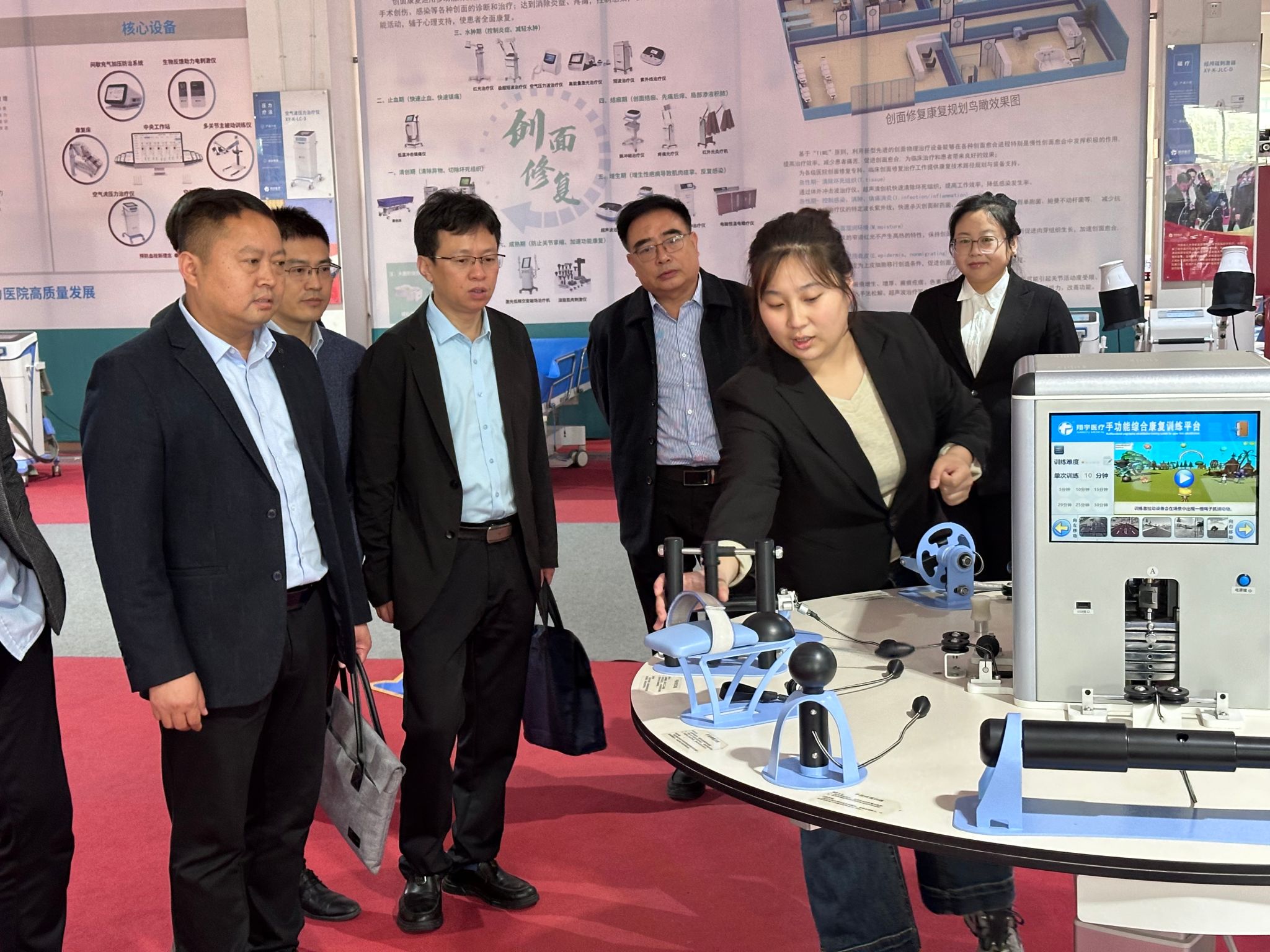 调研组一行先后参观了翔宇医疗的智能康复医疗设备工程技术研究中心、产品质量体系检测中心和康复医学博物馆。详细了解了翔宇医疗的发展历程、产品线布局和技术人才储备情况。随后在会议室与翔宇医疗领导层进行了座谈。张学顺向调研组详细介绍了企业创办理念、企业文化和在研产品线;韩道军介绍了yl7703永利官网计算机与信息工程学院的基本情况,重点介绍了学院科研、医工交叉工作、人才培养等,希望能够与公司加强项目合作,选派高年级学生到企业实习,增强学生把专业知识转化为解决实际工程问题的能力,既满足企业用人需求,又帮助学生实现就业。李君勇介绍了学校在知识产权管理、科研成果转移转化和产学研方面的政策体系和年度进展情况,并阐述了学校与翔宇医疗开展联合技术攻关和产学研方面的潜在合作点,并希望能够进一步与公司开展多学科交叉合作。
