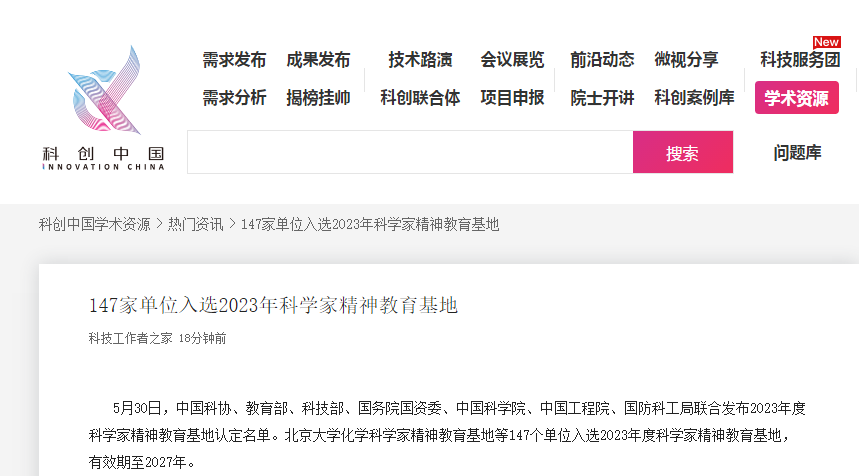 5月30日,中国科协、教育部、科技部、国务院国资委、中国科学院、中国工程院、国防科工局联合发布2023年度科学家精神教育基地认定名单,yl7703永利官网校史馆成功入选。全国有147个单位入选,有效期至2027年。