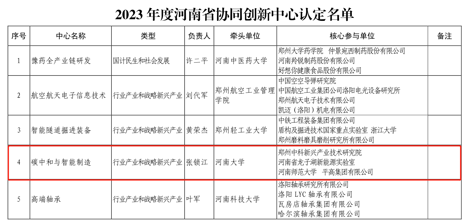 近日,河南省教育厅公布了2023年度河南省协同创新中心认定结果,由永利官网牵头,联合郑州中科新兴产业技术研究院、河南省龙子湖新能源实验室、河南师范大学、平高集团有限公司等单位组建的“碳中和与智能制造协同创新中心”成功入选,中心主任为张锁江院士。