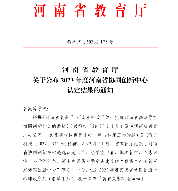 河南省协同创新中心是河南省为促进高等教育与经济社会的有机结合,密切高等学校与政府、行业企业、科研院所的多方合作,切实增强高校创新和服务能力而设立的,是我省创新体系的重要组成部分,中心在推动学科建设、人才培养、科学研究“三位一体”发展,主动对接新兴产业链和未来产业布局,具有解决经济社会发展重大问题的协同创新能力,能够为我省建设国家创新高地、实现“两个确保”贡献力量。