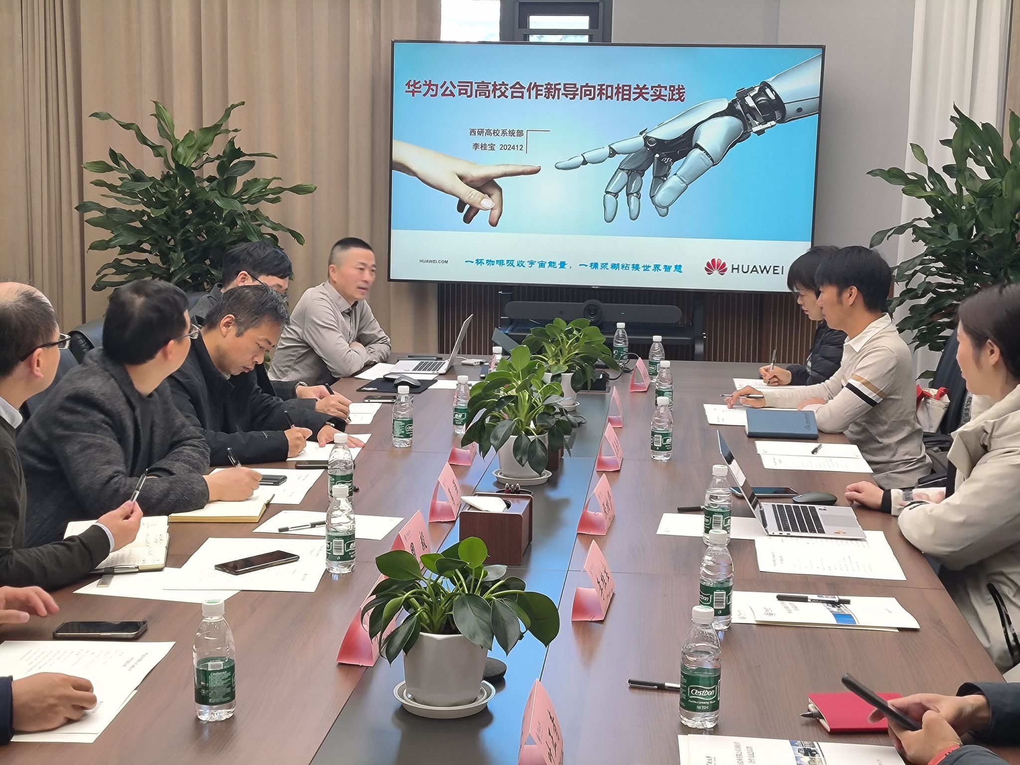12月6日上午,华为技术有限公司科学家委员会办公室主任张桂贤、华为西安研究所高校系统部部长李桂宝、华为难题揭榜接口人慕海涛和华为西安研究所高校系统部合作经理叶正青一行来校开展技术交流和合作洽谈。计算机与信息工程学院副院长葛强、软件学院副院长于俊洋、人工智能学院副院长周毅及部分专家出席座谈。会议由科技成果转移办公室主任李君勇主持。