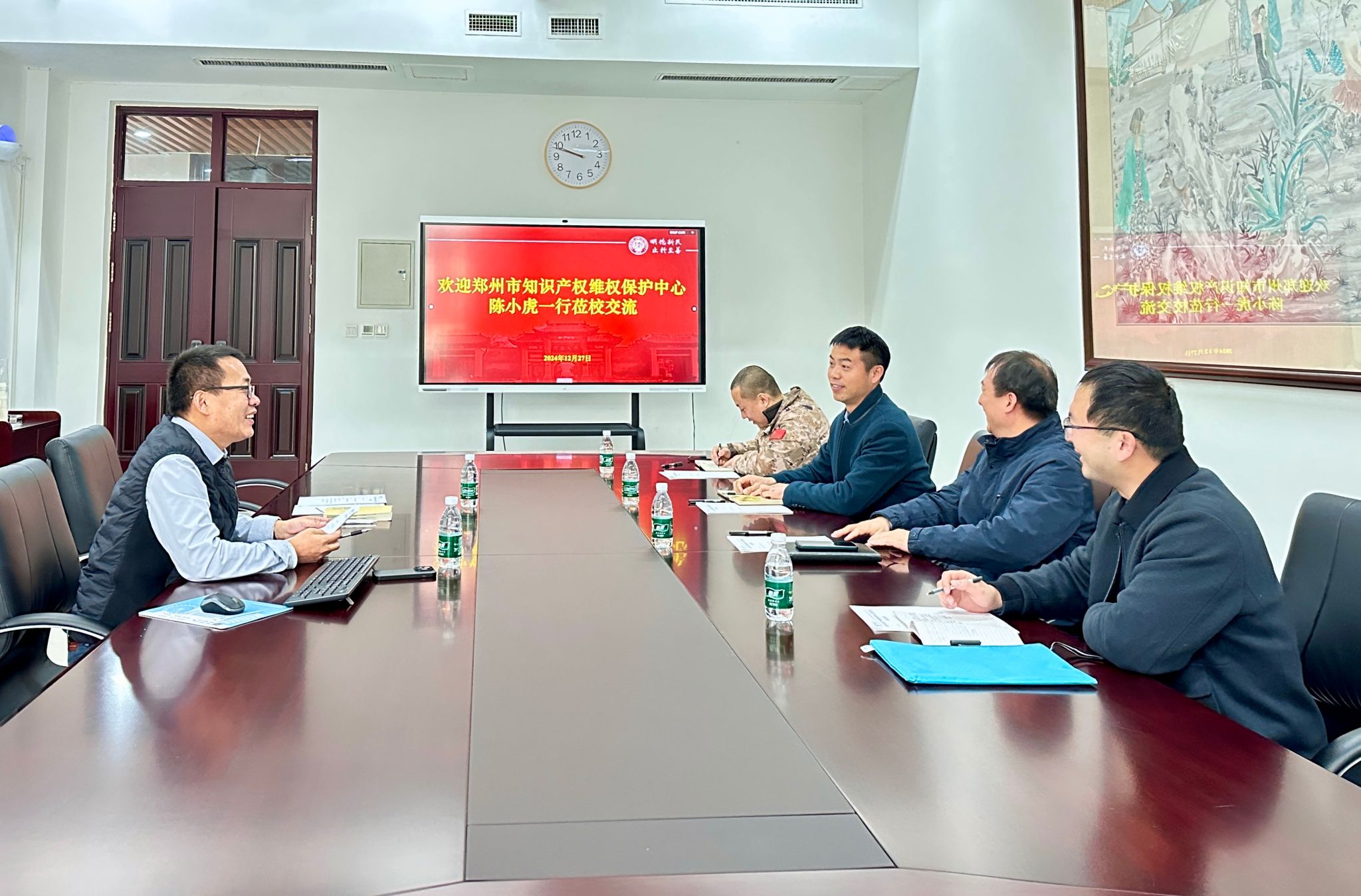 郑州市知识产权维权保护中心陈小虎一行莅校调研知识产权运营情况