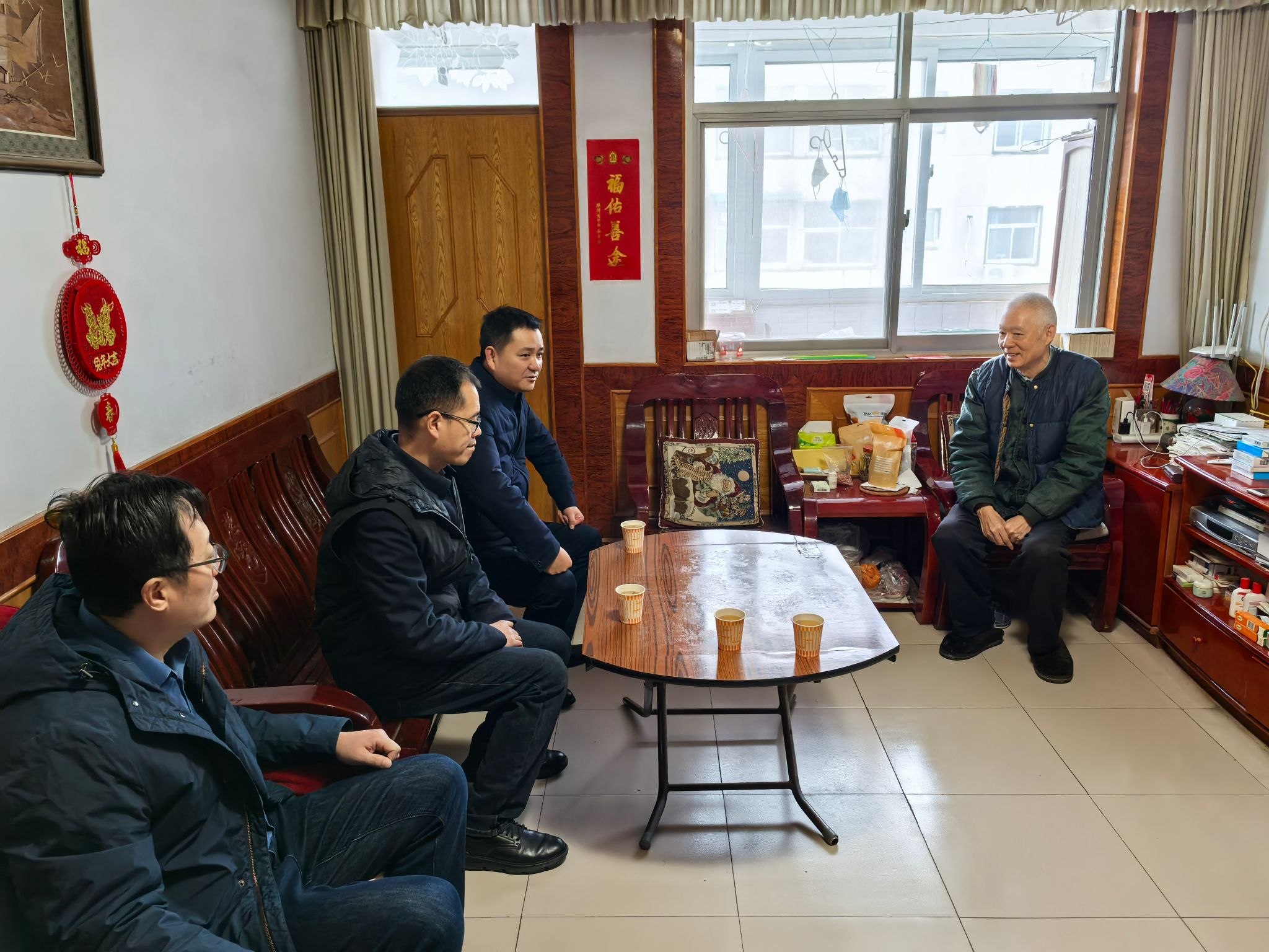 1月24日上午,yl7703永利官网院长胡彬彬,副院长邓浩、王岩走访慰问了退休老同志张保国、陈柏森,2025年新春佳节来临之际,提前为他们送上新春祝福。