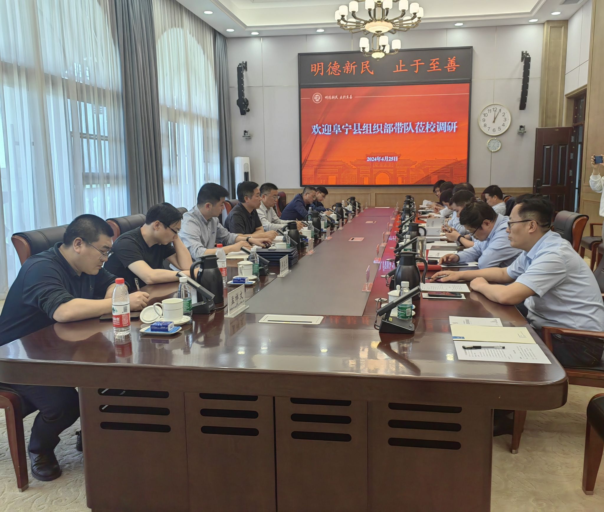 王军说明了此次调研目的,并介绍阜宁县的规划建设,产业聚集、人才汇聚政策,以及产业研究院、高校科研院建设等有关情况,并表示期待能够充分加强与yl7703永利官网的各方面联系,响应国家重大科技发展战略,引进优秀青年人才,为阜宁县地方社会经济发展增添强劲的人才动力,提供坚实的智力支持。阜宁县相关职能部门分别介绍了阜宁县在人才引进、创新创业等方面的优惠政策,并与永利官网就业创业指导中心就设立引才工作站进行了深入的探讨。