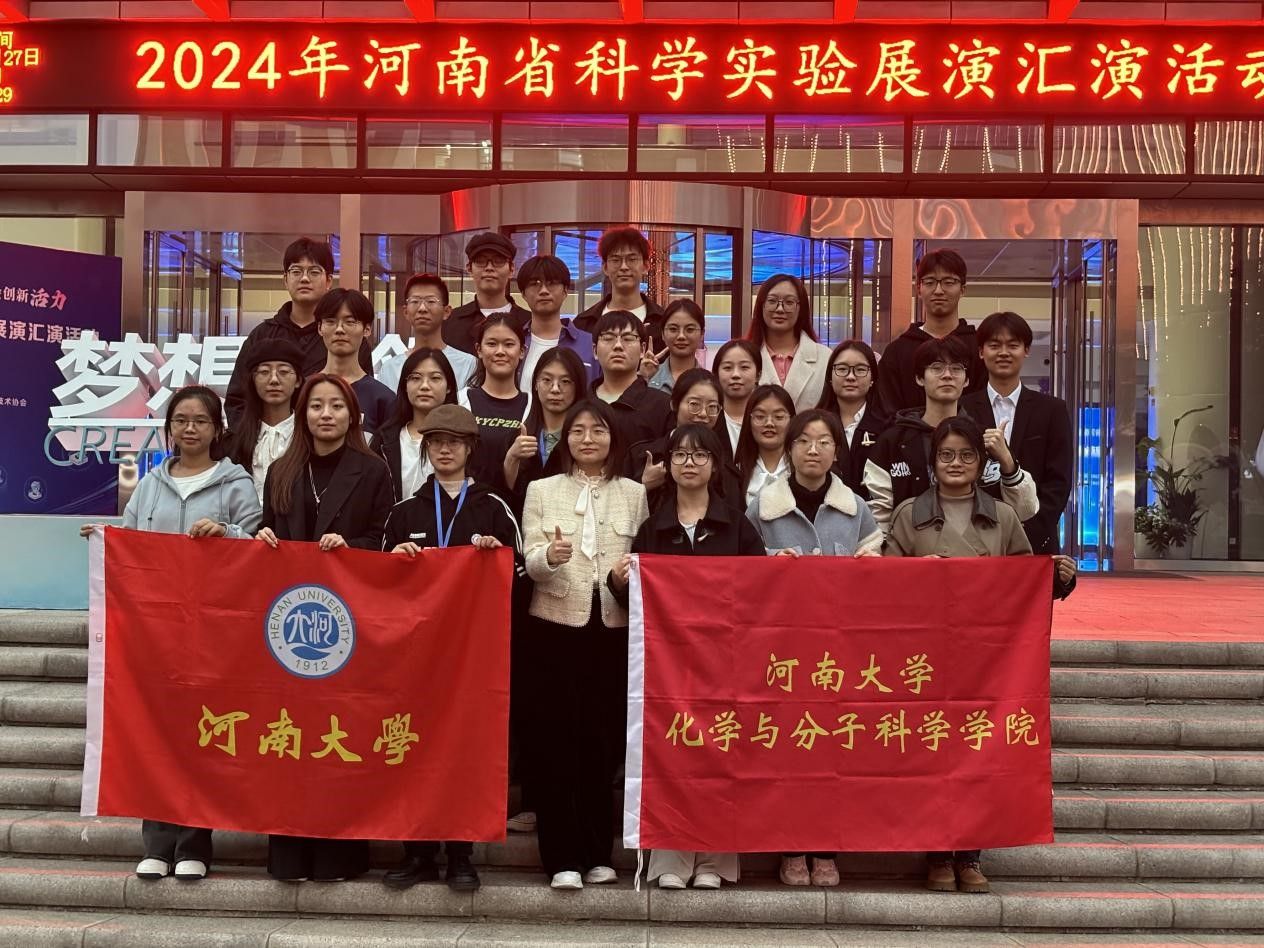 10月27日,河南省科学实验展演汇演活动在郑州智慧大厦隆重举行,经过精心组织,永利官网从化学与分子科学学院选派了5支队伍参加本次活动,均获得奖项表彰。经过角逐,参赛作品《光与影追踪:揭秘隐秘的硝烟反应与鲁米诺之光》、《灯神的奇妙冒险》和《从豆香古韵到碧水清流——胶体沉降反应的从古到今》荣获二等奖;《蓝晒技术与胶片,艺术和现实的碰撞》获三等奖;《气体科学秀》获最具人气奖、最佳表演奖。