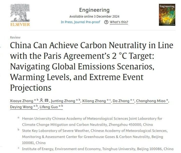 近日,应对气候变化与碳中和联合实验室张小曳院士团队在《Engineering》发表综述文章“China Can Achieve Carbon Neutrality in Line with the Paris Agreement’s 2 °C Target: Navigating Global Emissions Scenarios, Warming Levels, and Extreme Event Projections”。
