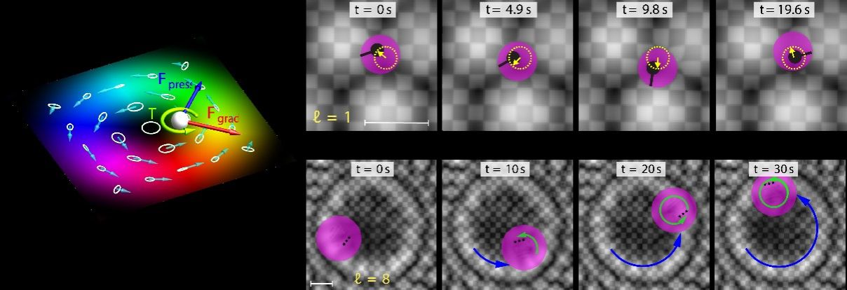 图 2 拓扑结构水波粒子操控实验:可实现对悬浮粒子的捕获、轨道和自旋运动,甚至可驱动乒乓球做轨道运动。