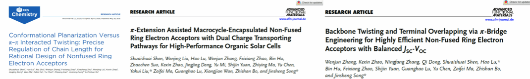 近期,纳米科学与工程研究院宋金生教授团队在非稠环电子受体研究中取得了系列重要进展,相关系列研究成果发表在《CCS Chemistry》、《Advanced Functional Materials》等国际知名期刊上。