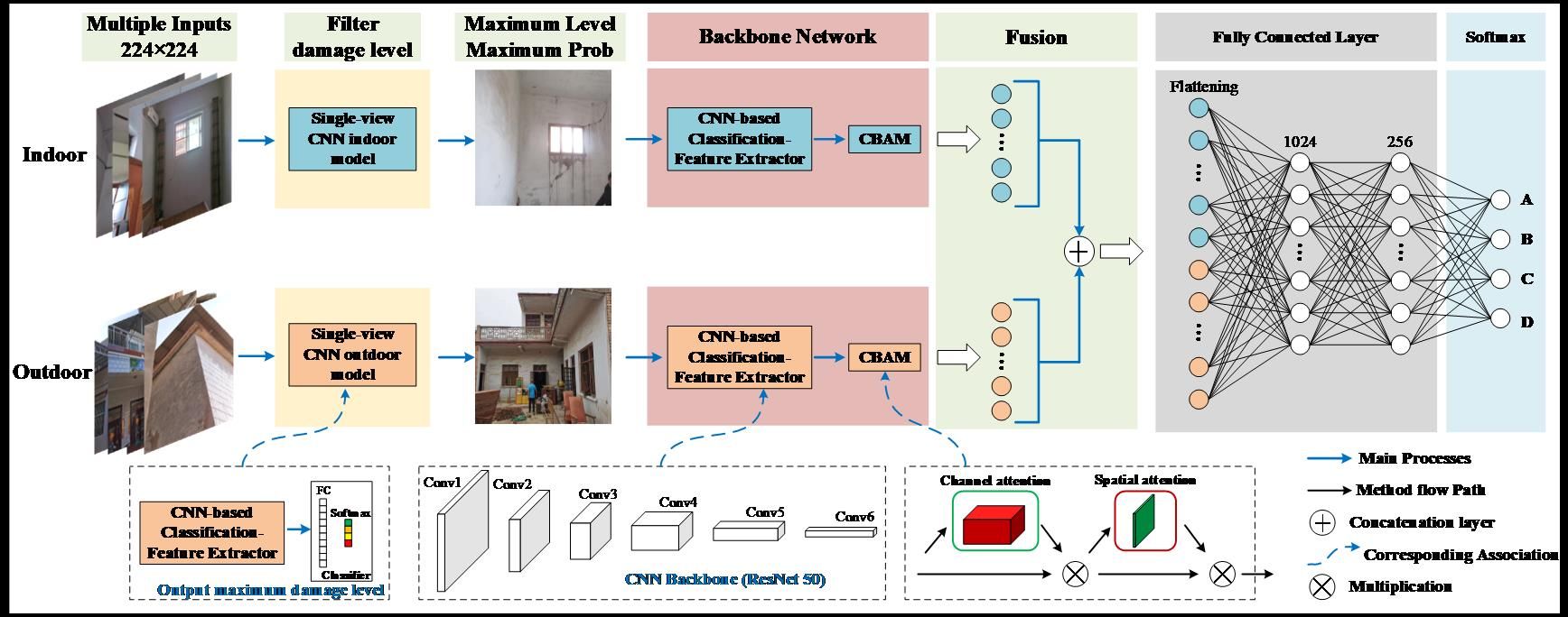 随着全球气候的变化,暴雨和台风等极端天气频发,进而引发洪涝灾害,城市周边的村镇区域一般设计为泄洪区,因此村镇房屋承受洪涝灾害的破坏。洪涝灾害发生后,准确快速诊断和评估灾后村镇房屋的损坏程度,是保证人民安全和房屋后期修复依据的紧迫任务。传统的人工鉴定方法需要大量的人力资源,鉴定慢,人员的技术参差不齐。