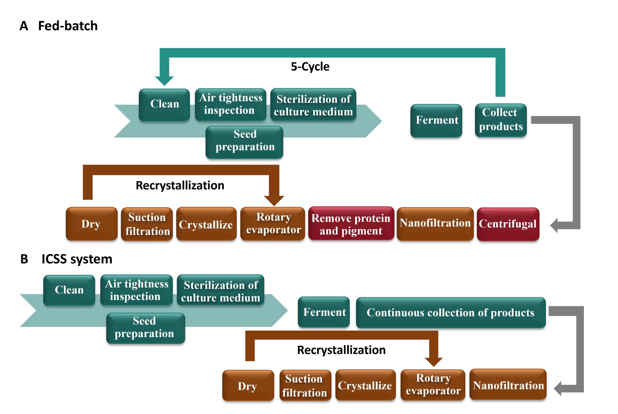 图2 ICSS系统与传统补料分批发酵生产DHA工艺比较