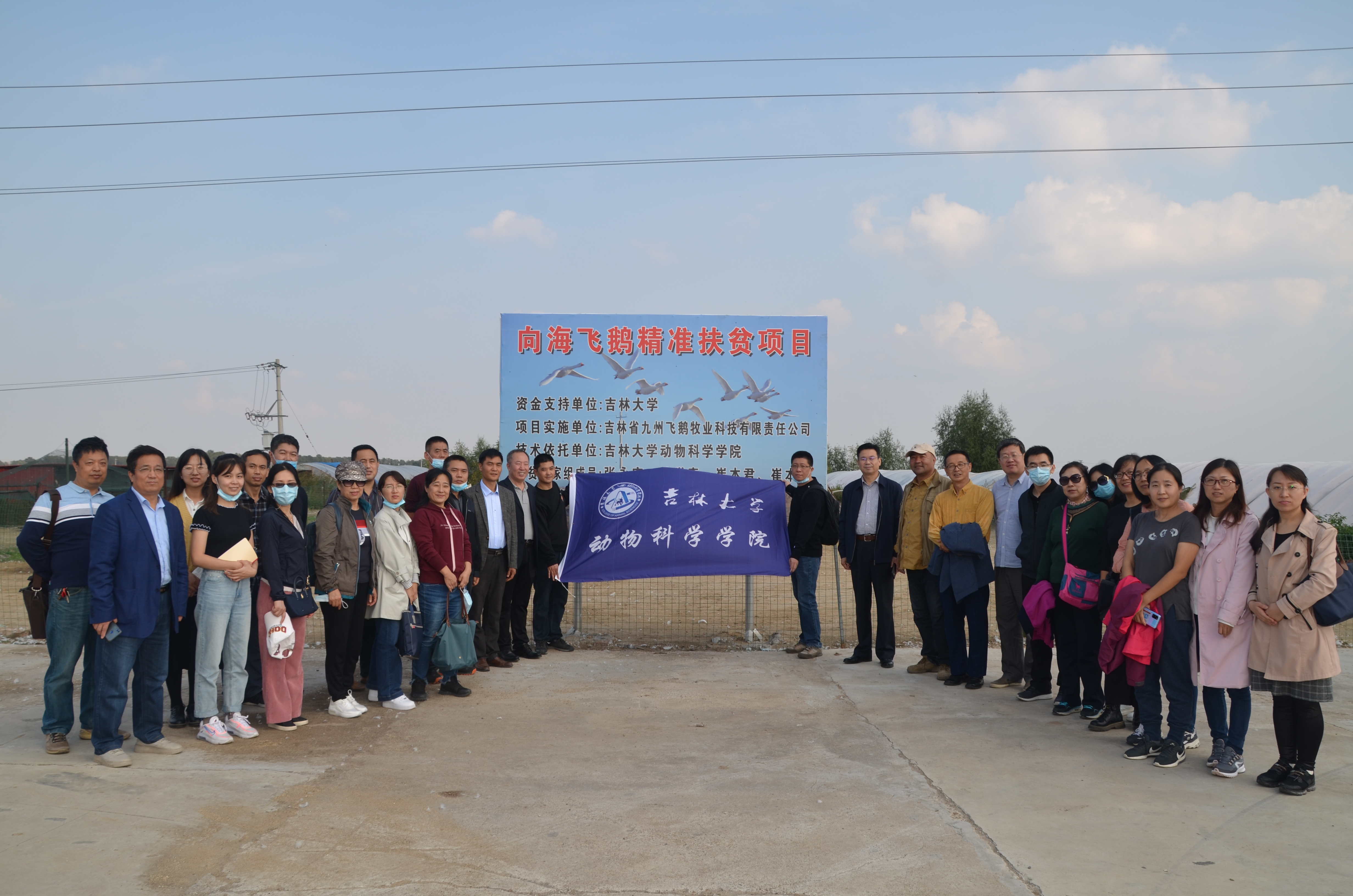 “向海飞鹅养殖基地”以学院张永宏副教授团队与企业合作开展的“向海飞鹅培育与推广示范项目”为依托,结合当地家鹅特点,选育出拥有野生大雁种性,更耐粗饲、肉质更优,且具有飞翔和归巢能力的向海飞鹅肉用种群,年推广向海飞鹅5万只左右,实现社会效益达500万元。在基地负责人和张永宏副教授的带领下,学院教师深入了解了项目背景和当前进展情况,并现场观看了飞鹅放飞仪式,纷纷发出了由衷的赞叹!