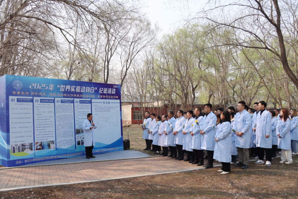 注重结合实际“悟”。当天上午,学校实验动物福利伦理委员会和实验动物中心联合以科学之名和生命之名,在院区“实验动物慰灵碑”前举行2025“世界实验动物日”纪念活动。纪念活动由副院长袁宝主持,学校实验管理处副处长孙翔宇、科研院科技管理办公室副主任朱峰分别致辞,读书班全体学员和学院部分师生参加纪念活动。党委书记徐仁元以《致敬为人类健康事业奉献生命的实验动物》为题,倡导全校师生加强科技伦理治理,以珍爱之心对待生命,以珍惜之态高效科研,以珍视之情铭记贡献,以珍重之志革新创造,让更多实验动物为人类健康事业做出更大贡献。