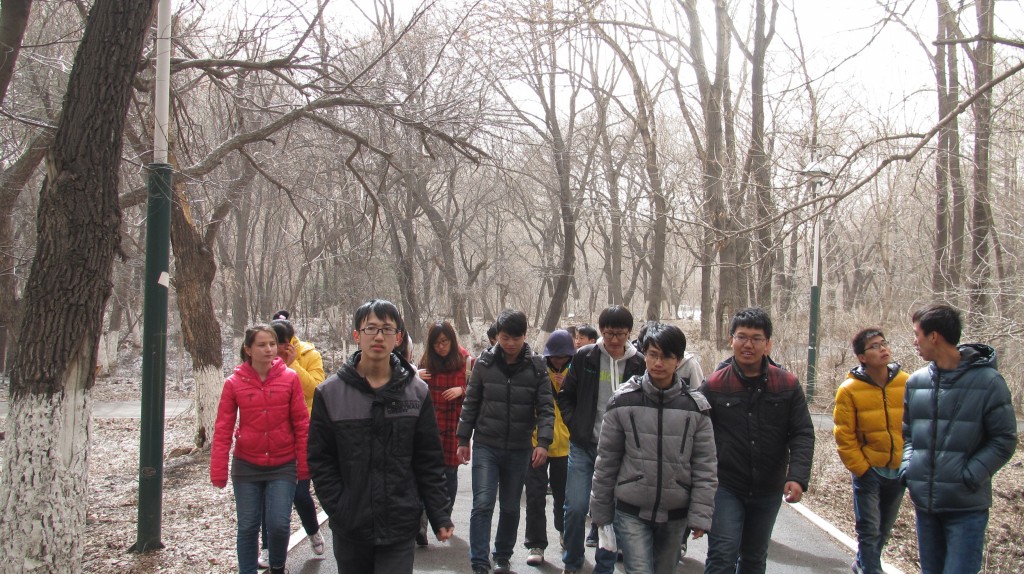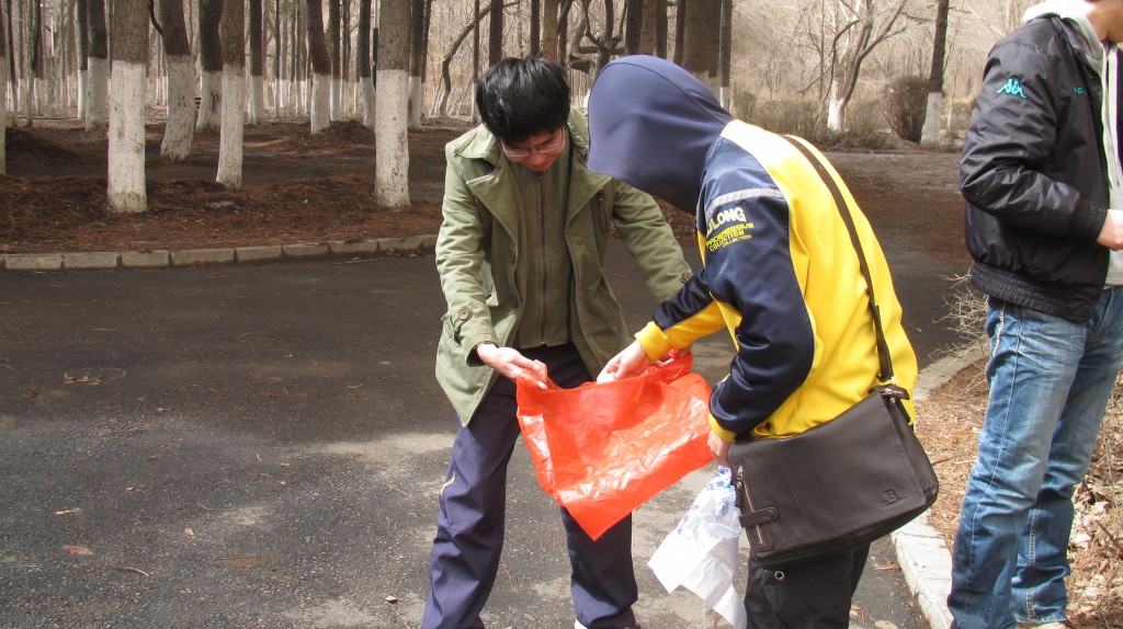 下午一点,同学们携带好自备的塑料袋和清理工具从学校步行来到绿园区林园。班长张炳旭很快就安排好同学们的各自清理区域,服务活动如火如荼的进行着。四月的长春依然是一副冬天的模样,凛冽的寒风夹杂着灰尘,将公园里还未苏醒的树木吹得左右摇摆,同学们也双手冻得通红。可恶劣的天气状况并没有影响大家志愿服务的热情,我们边捡垃圾边说笑,这还沉睡着的林园,瞬间仿佛苏醒了一般,四处飘散着同学们的青春活力。