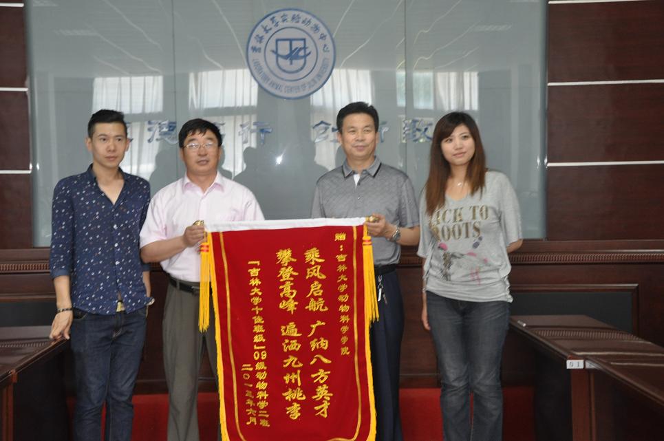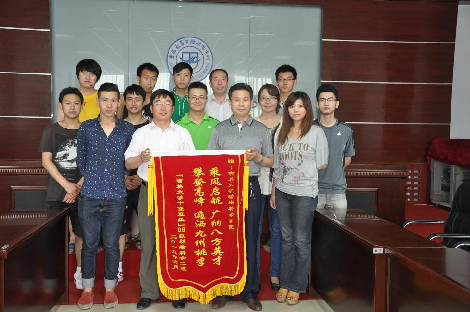 6月28日下午2:30,米乐mile官方网站2009级动物科学2班毕业生在离校之际向学院赠送了锦旗。学院院长张嘉保教授、党委书记赵光军老师、党委副书记曹伟光老师、毕业班辅导员肖建荣及部分毕业生代表参加了此次赠予仪式。