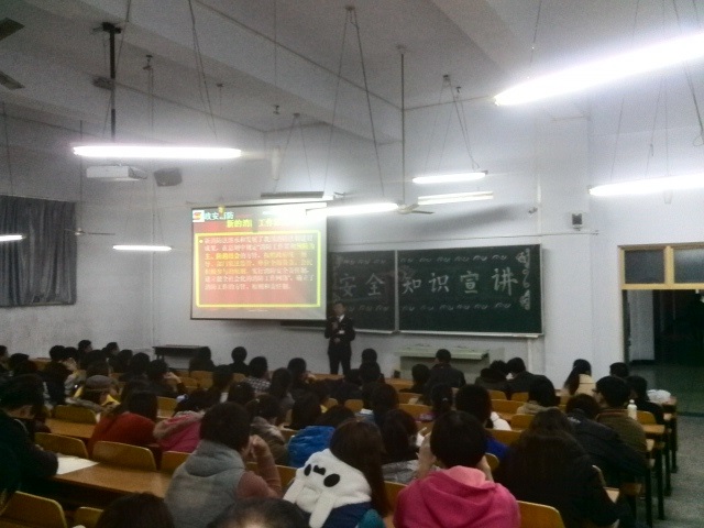 最后,他给大家分析了火灾发生的原因,尤其强调大学生应着重防范“明火易燃”和“电线起火”,并指出当前大学生乱点蚊香、蜡烛、乱丢烟头、使用不合格接线板、使用热得快等电器很容易引起火灾,呼吁同学们对自己和他人生命和财产负责,引以为戒。