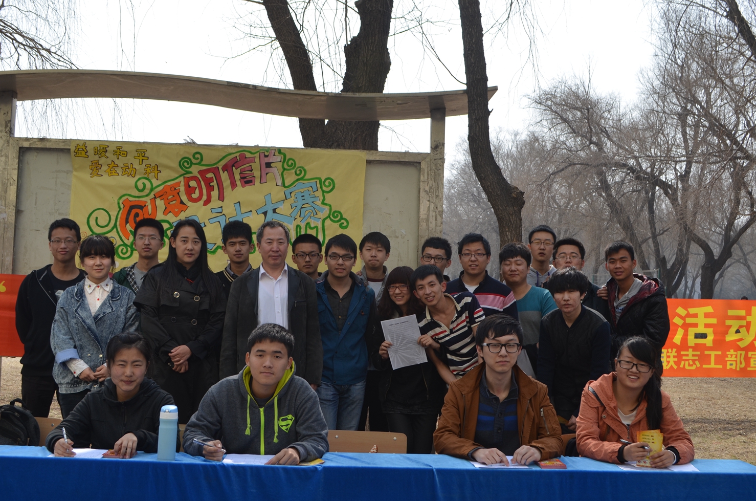 米乐mile官方网站外联志工部于3月27号中午在5号公寓门前举办了“益暖和平,爱在动科”系列公益活动之公益明信片设计大赛报名活动。院党委副书记曹伟光、团委书记于丹丹两位老师亲临活动现场,参与本次活动。
