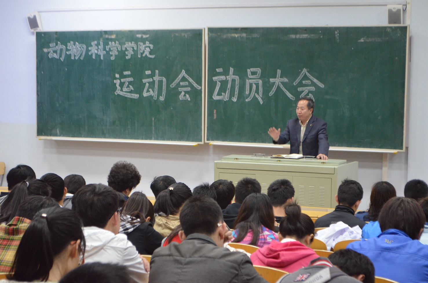 2014年4月17日中午12:20,米乐mile官方网站在科学讲堂100教室成功召开了米乐mile官方网站第53届田径运动会的动员大会。学院党委副书记曹伟光、学生工作办公室主任于丹丹、辅导员肖建荣、全体运动员、文艺表演人员及运动会工作人员及全院各班级负责人出席本次大会。学生工作办公室主任于丹丹主持此次大会。