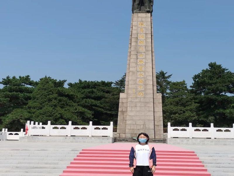 8月3日下午,团队成员来到了位于辽宁省沈阳市的抗美援朝烈士陵园。直径约5米的环形墙壁环抱着烈士纪念碑,纪念碑上面密密麻麻地刻着在抗美援朝中牺牲的烈士的名字。在纪念碑后面,一排排革命烈士的墓碑格外显眼,许多无字碑屹立其中,前来吊唁的人无不低头默哀。团队成员在烈士纪念碑前,向革命先烈致以最高的敬意,一股莫名的坚定信念在心中油然而生。