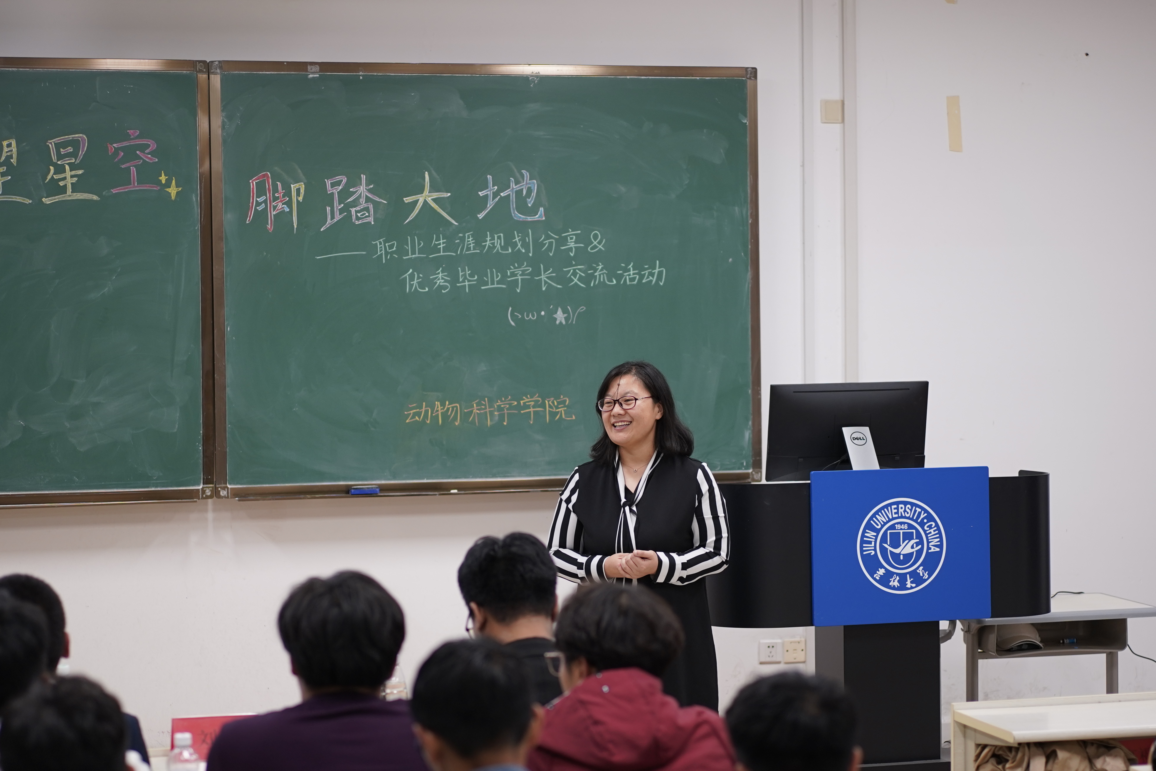 交流会正式开始之前,肖建荣对到场嘉宾表示欢迎和感谢。一方面,她对禾丰牧业的建立、经营、发展、壮大等情况进行了整体介绍,对该企业对学院人才培养、学生成长成才所提供的帮助给予充分肯定;另一方面,她从大学生职业生涯规划出发,以到场嘉宾的求学历程、成才过程为例,指出开展本次讲座的初衷和意义。