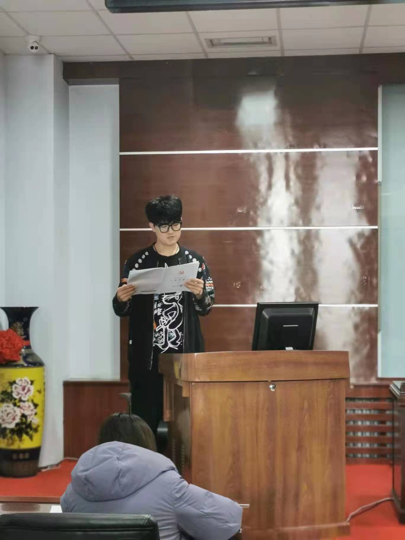 学生辅导员王可佳作为入党介绍人,言辞恳切地向党支部成员详细汇报了18名同志的日常表现和思想成长以及过程中一一存在的不足。经支部大会无记名投票表决,张一凡等18名同志基本符合党员标准,同意接收他们加入中国共产党。至此,主持人王文婧宣布会议圆满结束。