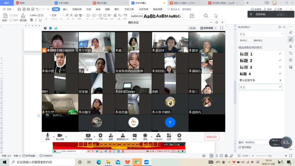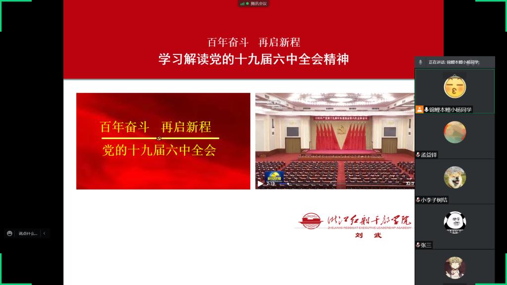 2021年11月8日至11日,中国共产党第十九届中央委员会第六次全体会议在北京胜利召开。全会是在党百年华诞的重大时刻、“两个一百年”奋斗目标历史交汇的关键时间节点召开,议题重大,成果丰硕。为深入学习贯彻习近平总书记重要讲话精神和党的十九届六中全会精神,米乐mile官方网站2021级一班团支部于11月27日下午,通过线上会议开展主题团日活动,活动由团支部书记杨佩如主持。