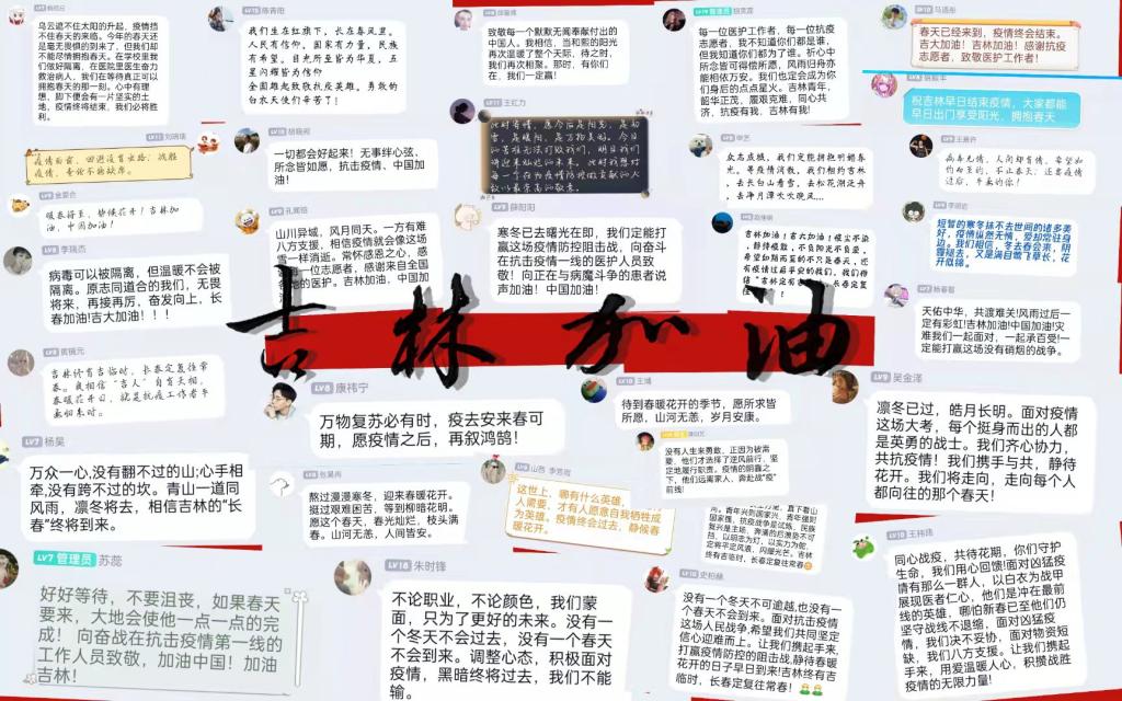 胡灵蕊:每一位医护工作者,每一位抗疫志愿者,我不知道你们都是谁,但我知道你们都为了谁。祈心中所念皆可得偿所愿,风雨归舟亦能相依万安。我们也定会成为你们身后的点点星火。吉林青年,韶华正茂,履艰克难,同心共济,抗疫有我,吉林有我!