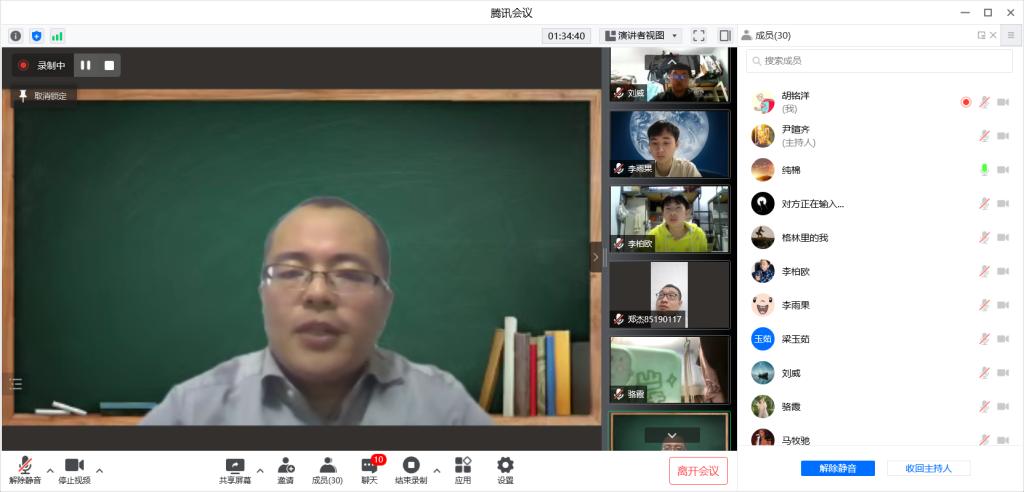 党委副书记肖建荣、副院长张明军、袁宝、李纯锦老师也分别就2018级毕业生所面临的毕业设计、实习、考研复试、考研调剂、求职就业以及2019级学生面临的保研、考研、暑期夏令营等相关事宜与同学们进行沟通交流。党委副书记肖建荣老师尤其强调:在校外实习的2018级学生一定要做好个人防护,按时在网络办事大厅签到打卡,与学校老师保持联系。