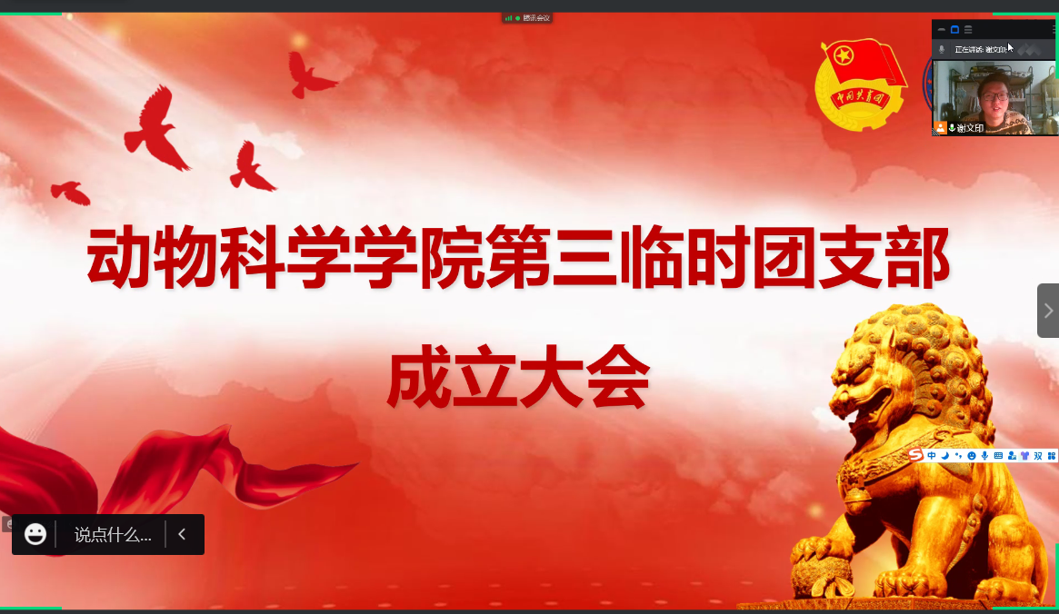 面对严峻的疫情防控形势,米乐mile官方网站团委在学院党委的领导下,在校团委的指导下,充分发挥团支部的先锋模范作用,在封校期间增强学生凝聚力,实施网格化管理,畅通信息渠道,按照校团委下发《关于疫情防控期间成立临时团支部的通知》的要求,组建成立了动物科学第三临时团支部。