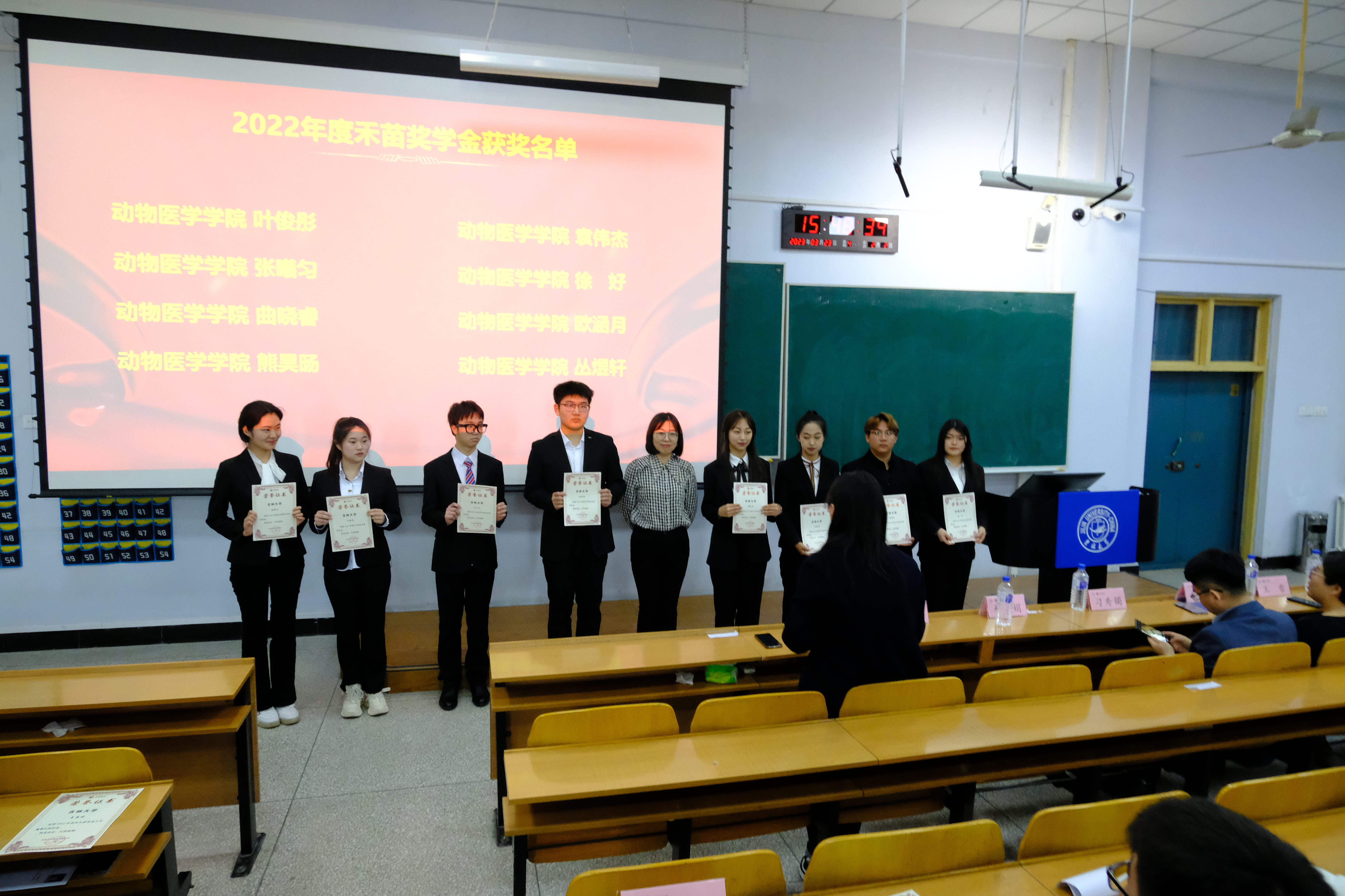 情系高校学子,聚焦农科人才,成就青年梦想。2023年3月23日下午,2022年度禾丰股份“金卫东董事长助学金”“禾苗奖学金”颁奖仪式暨校园招聘宣讲活动在和平校区科学讲堂400教室顺利举办。沈阳禾丰销售总经理刁秀镯、沈阳禾丰高级客户服务经理王雪、禾丰股份辽宁区区域招聘培训COE杜娟、米乐mile官方网站党委副书记肖建荣、动物医学学院党委副书记谭瑶,米乐mile官方网站和动物医学学院辅导员及学生代表参加本次活动。活动由米乐mile官方网站2021级本科生王展同学主持。
