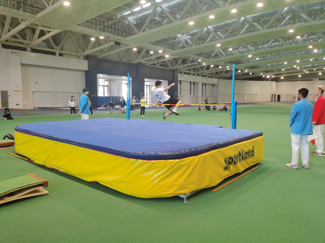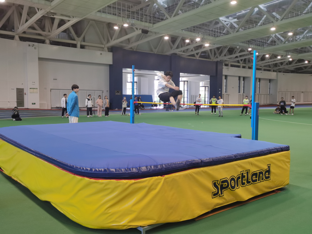 在跳高项目中,我院的参赛同学发挥出色,敢于挑战自己。