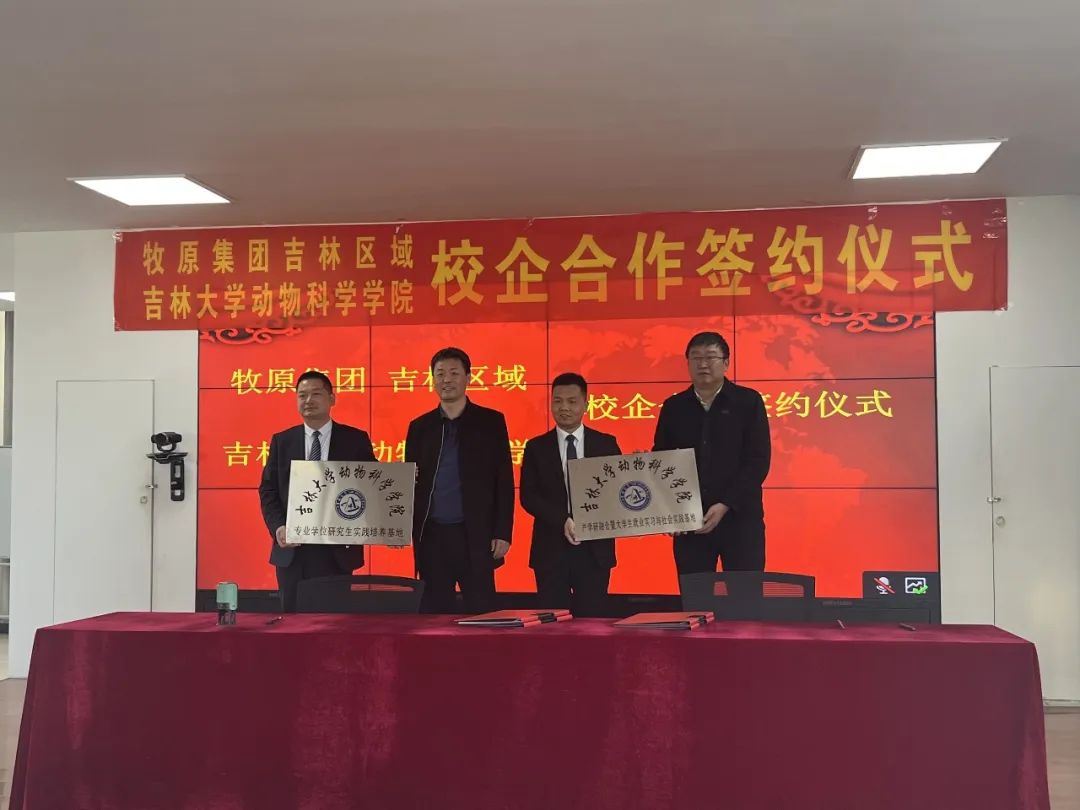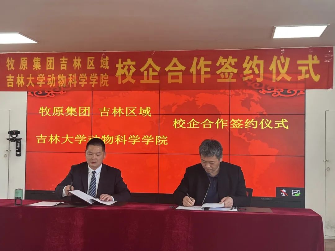 2023年4月26日下午,米乐mile官方网站与牧原集团吉林区域校企合作签约仪式在吉林农安顺利举办。牧原集团吉林区域总经理甄玉清,吉林区域生产总监金恩望,米乐mile官方网站院长孙博兴,副院长张明军,动物科学系教师梁爽、唐鸿宇,辅导员王可佳等参加仪式。仪式由牧原集团吉林区域人力资源总监于晓情主持。