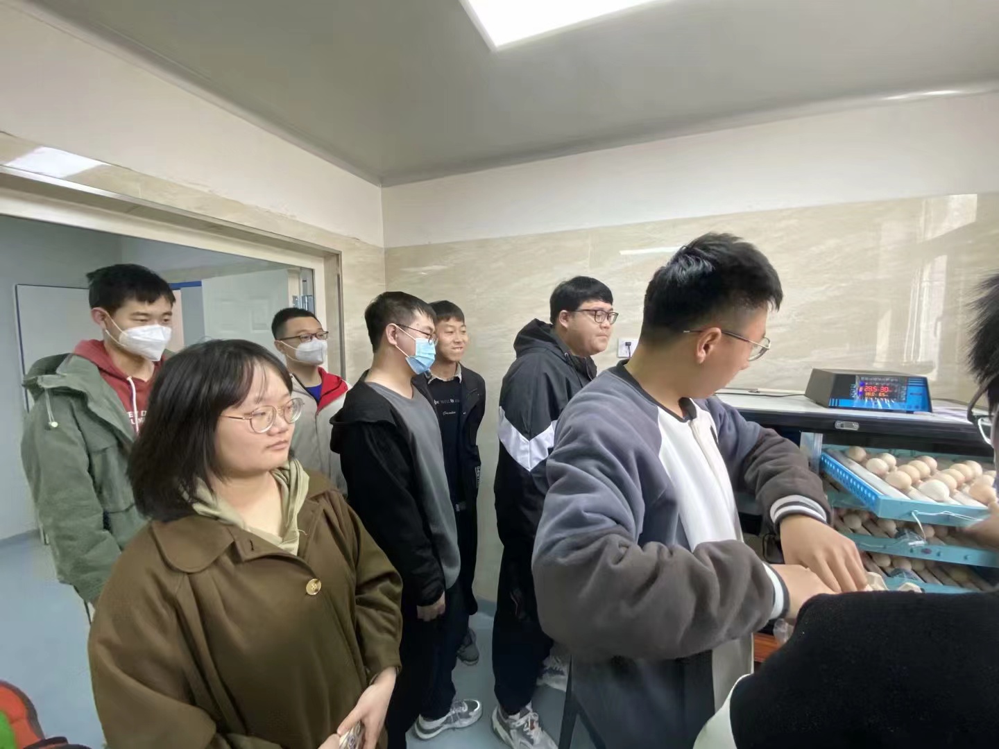 4月18日上午,在动物科学系主任张永宏老师的带领下,毕业生代表们来到实验教学中心,将受精种鸡蛋带到孵蛋室进行孵育。张老师为大家详细地讲解了鸡蛋孵育所需的温度湿度条件以及仪器调试方法。随后,大家根据工作安排,制定计划表,分为多个小组,轮流负责添水、观察、转蛋等孵育环节。