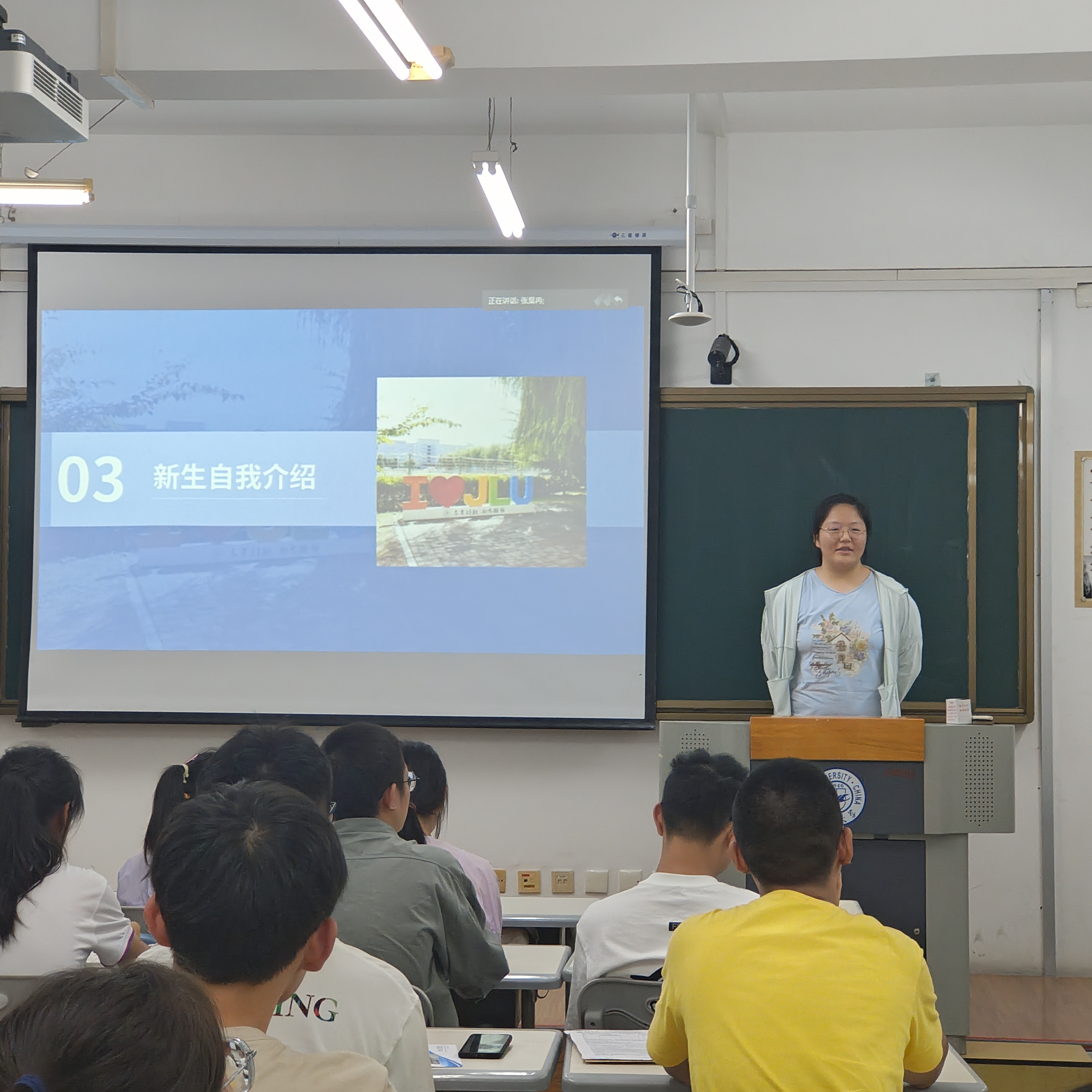 在班主任与班代的发言结束后,同学们敞开心扉介绍自我,近到长春本地,远到云南、甘肃、四川、内蒙……来自五湖四海的同学们站在讲台上,讲述着自己的性格、爱好等,听众们也从言语中认识着新朋友。同时,有意参选军训负责人的同学也自信地展示着自己的经历。欢笑声中,辅导员刘姣伶老师也“突击抽查”,交流融洽。