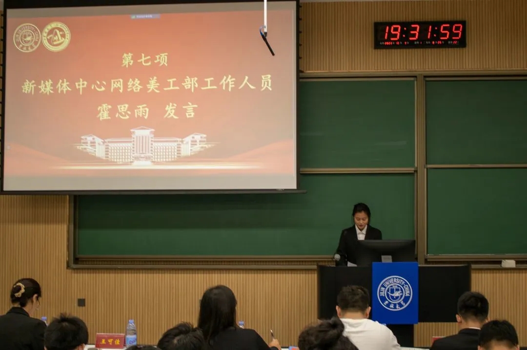 随后,第十二届学生会执行主席赵佳明、团委志工部负责人张敬宜以及新媒体中心网络美工部工部工作人员霍思雨上台发言,分享了各自过去一年在学生组织的成长和收获,并从部门职能、工作成果和未来规划等方面进行了介绍,加强了其他成员对其所在组织的认识,便于日后开展工作。