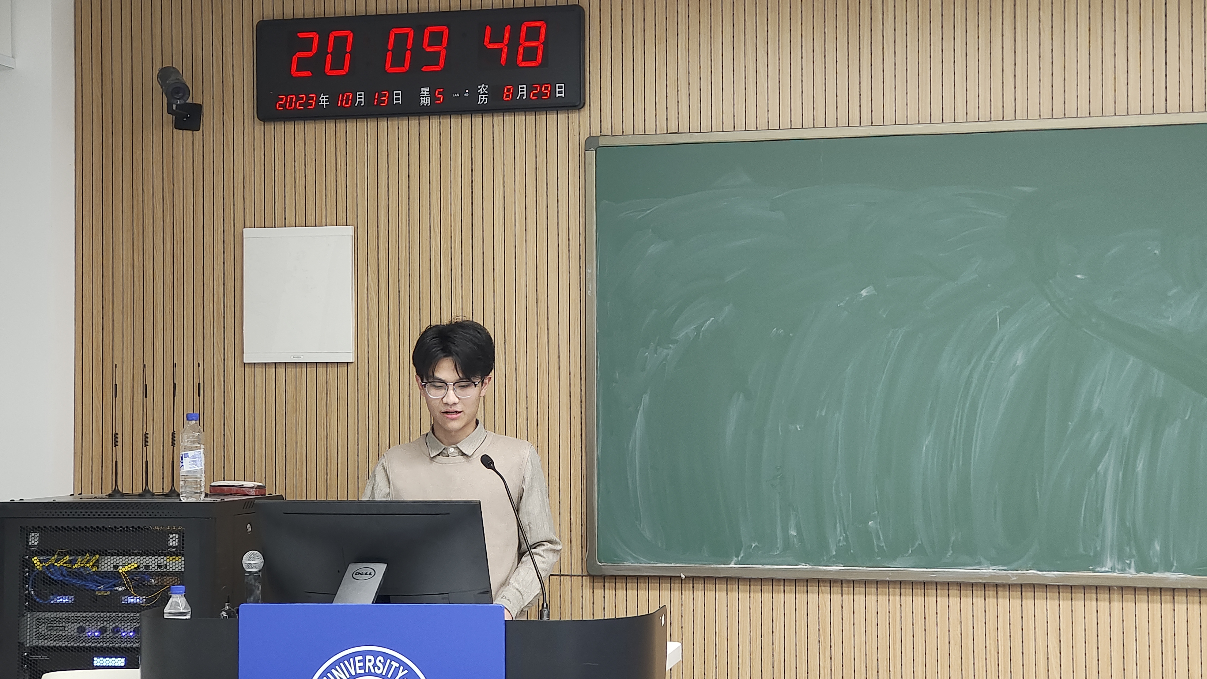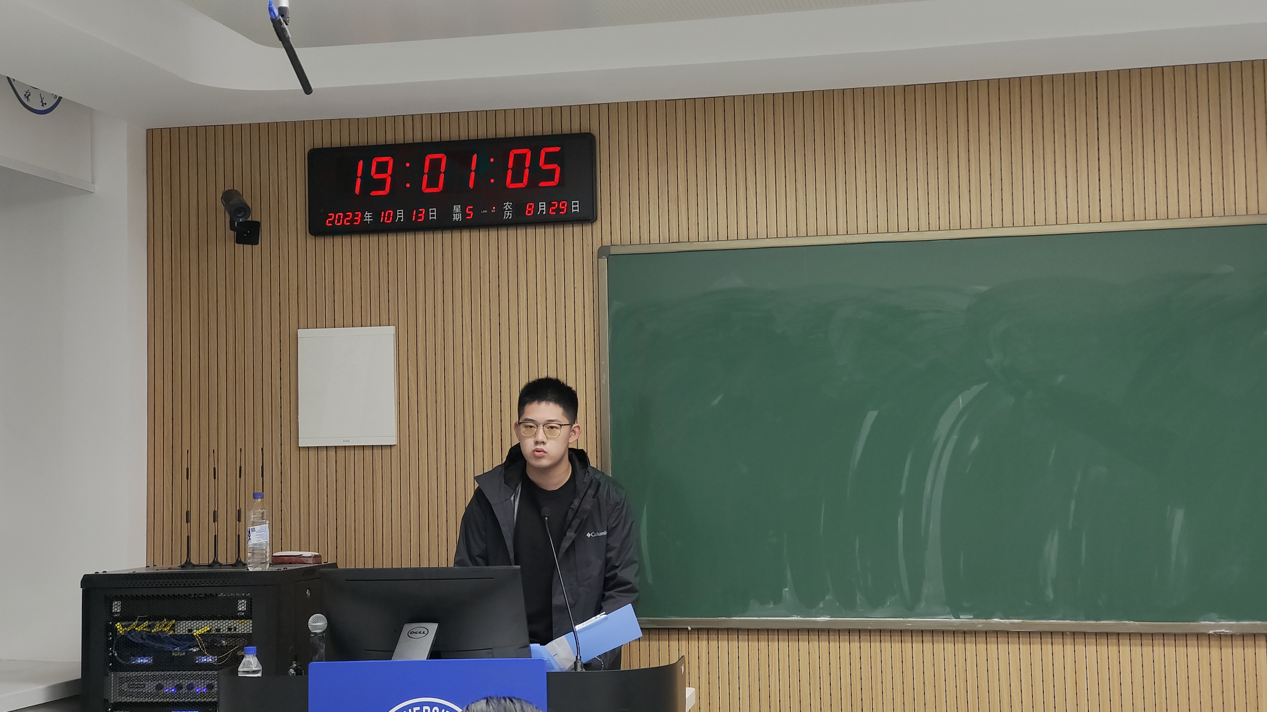 张徐钲同学用表格清晰地列出他参与夏令营的情况,并就夏令营活动中“入营、参营、考核”这三大节点展开详细介绍,使同学们对夏令营的整体情况有了大概了解。