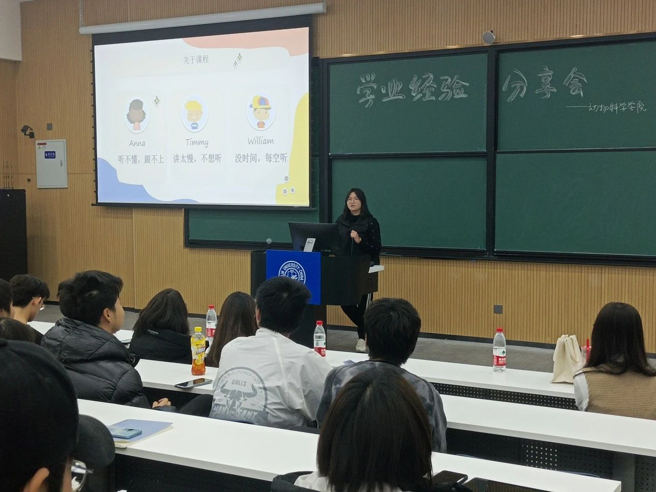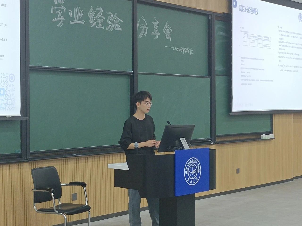 接下来,2021级本科生王展分享了自己学习无机化学的经验,他先是指出教材和课后习题的重要性,随后简明扼要说明了无机化学的学习内容以及科目特点。他建议大家做好课前预习和课后复习,在课余时间进行习题练习亦有很大的增益。最后他以期末考试题型与教材习题的对比来提醒同学们平时一定要高度重视对课后习题的练习。