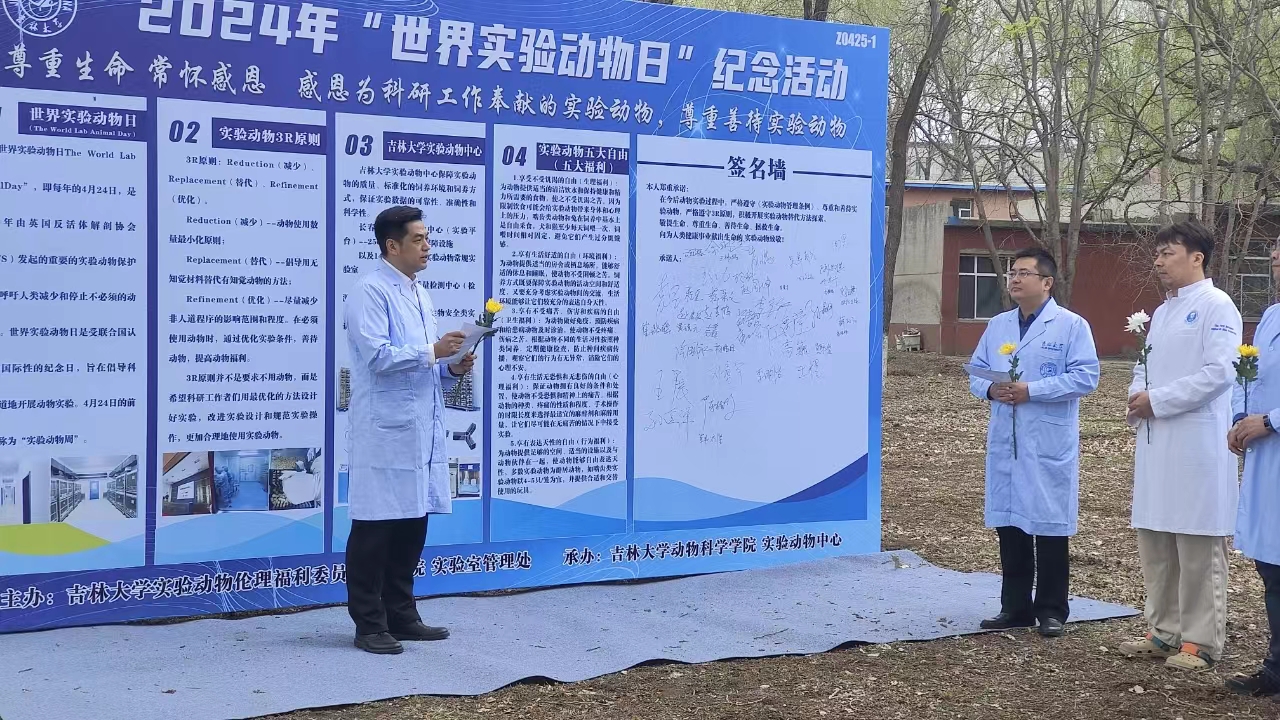 为深入贯彻落实中共中央办公厅、国务院办公厅印发的《关于加强科技伦理治理的意见》,切实加强实验动物规范生产和使用,2024年4月24日9时30分,由实验室管理处、科研院、米乐mile官方网站实验动物福利伦理委员会主办,米乐mile官方网站实验动物中心、米乐mile官方网站承办的“世界实验动物日”纪念活动在和平校区实验动物慰灵碑前举行。学校实验室管理处副处长孙翔宇、科研院科技管理办公室副主任董双石、米乐mile官方网站院长孙博兴、副院长张明军、副院长袁宝及校内众多对实验动物心怀敬意的师生参与本次活动。本次活动由袁宝主持。
