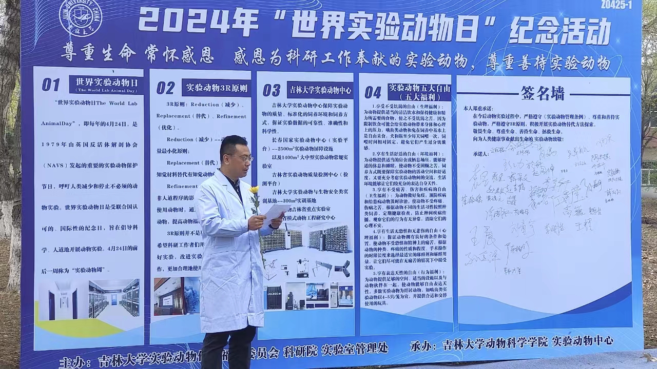 随后,孙翔宇副处长代表实验室管理处向专程前来参加仪式的各位师生表示敬意。他提到,善待实验动物、维护实验动物福利和伦理是每一名科学工作者的责任,也是人类理智与情感的升华。他希望每一位从事科学研究的师生,都能在这个特殊的日子里,对实验动物表达敬意和感激,并在未来的科研工作中以更加科学严谨的态度对待动物实验。