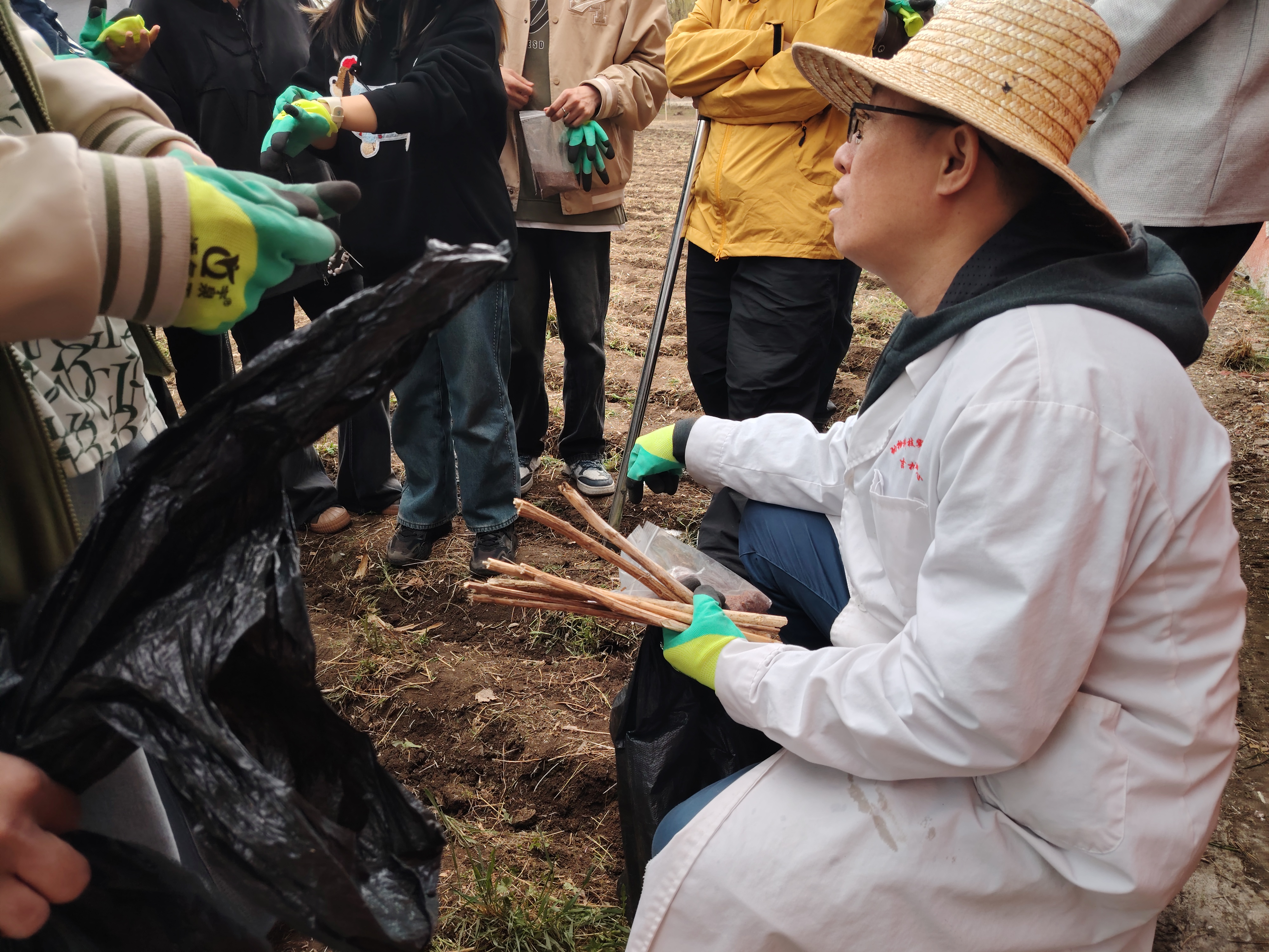 在动手实践环节,学生们在沈景林教授的指导下规范使用农具,分工协作,完成除草、耙地、垄沟及播种等操作。挥动锄头、撒下种子的每一个动作,不仅是对传统农耕智慧的传承,更是对劳动精神的身体力行。伴随着汗水洒落大地,同学们深刻体会到劳动人民的辛苦与执着,也坚定了将专业所学服务三农事业的理想信念。