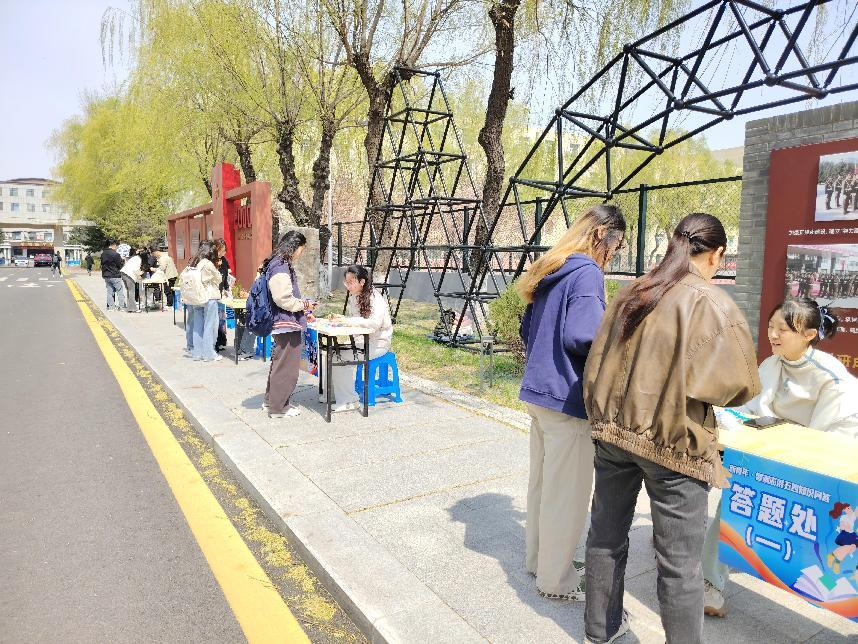 暮春四月,草长莺飞。4月29日,米乐mile官方网站于和平校区文化长廊前举办“新青年·智潮澎湃”五四精神问答活动,以知识问答为载体,引领青年学子重温历史、感悟五四精神。学院副书记肖建荣、辅导员贾子一全程参与,与青年学子共赴知识之约,在春日校园中掀起兼具思想深度与青春活力的学习热潮。