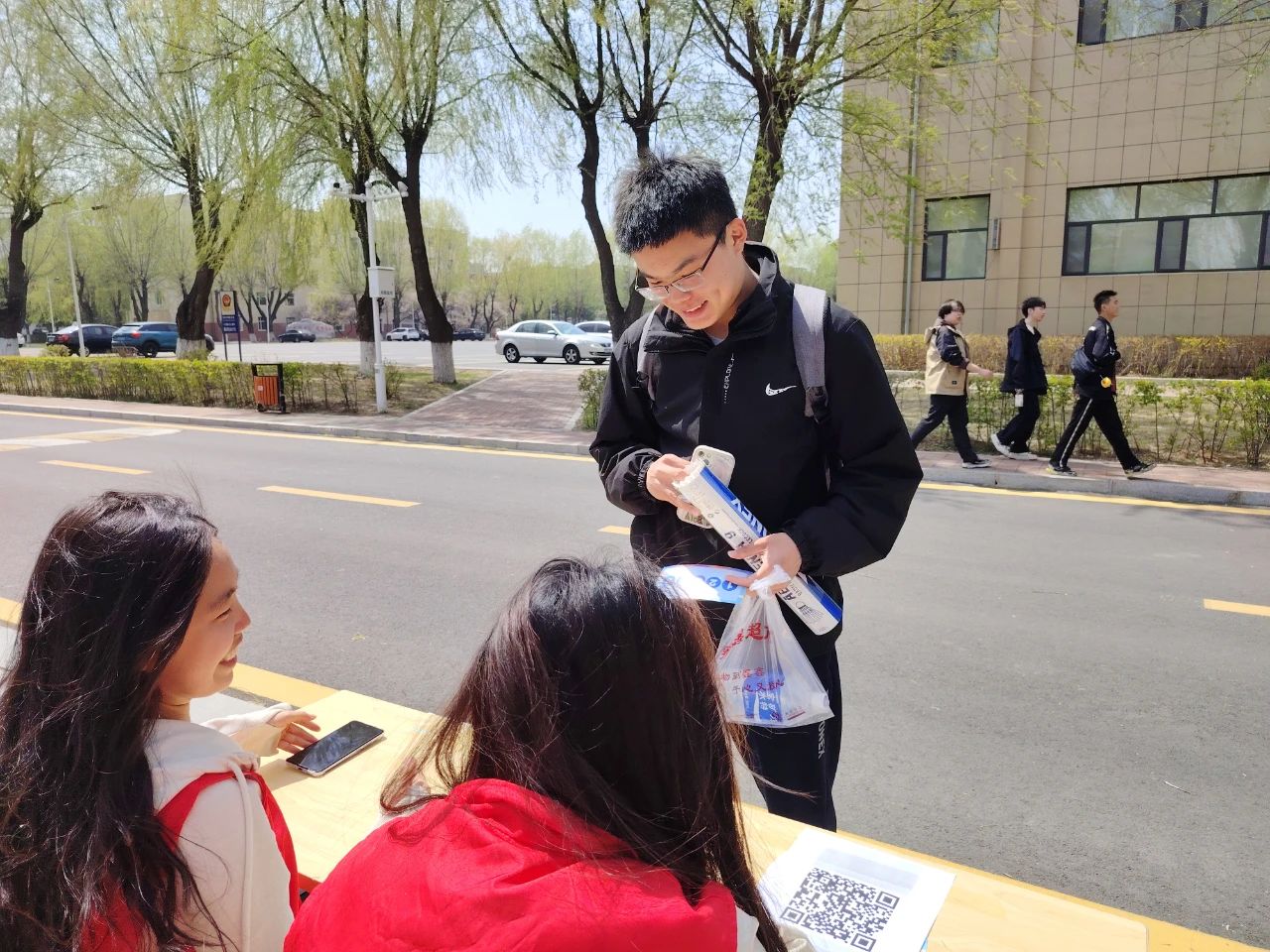 日挂中天,十余名志愿者化身“知识摆渡人”,用行动诠释服务精神:搬运物资时脚步匆匆,解答疑问时耐心细致,维持秩序时全神贯注。摊位前,同学们或凝神思考、或轻声研讨,在思维交锋中深化认知;兑奖处的小小礼品,承载着对求知精神的肯定,传递着“学以增智、学以修身”的价值导向。