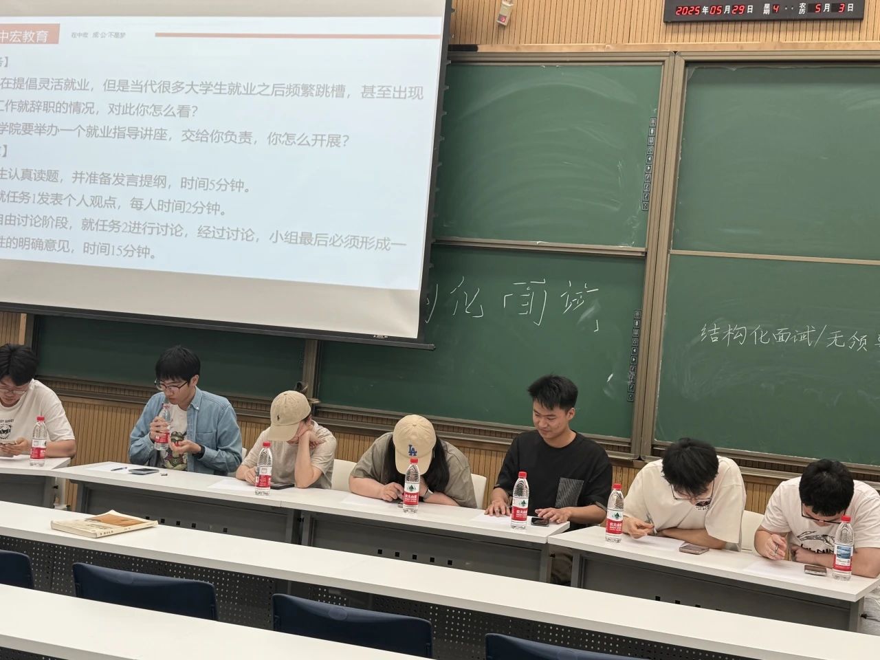 最后进入实战演练环节,米乐mile官方网站的王凯淳同学和动物医学学院的刘睿伶同学分别进行了真实紧张的模拟面试。随后又进行了无领导小组讨论展示,王铁衡、刘伟峻等七位同学积极参与,充分发表各自的观点和看法。通过模拟真实的面试场景,同学们不仅锻炼了自己的表达能力和团队协作能力,也更加直观地了解了面试流程和技巧。