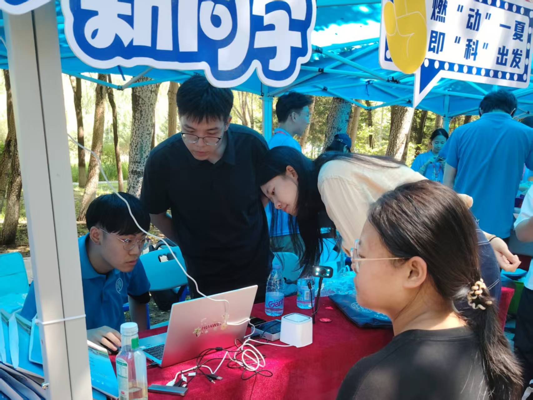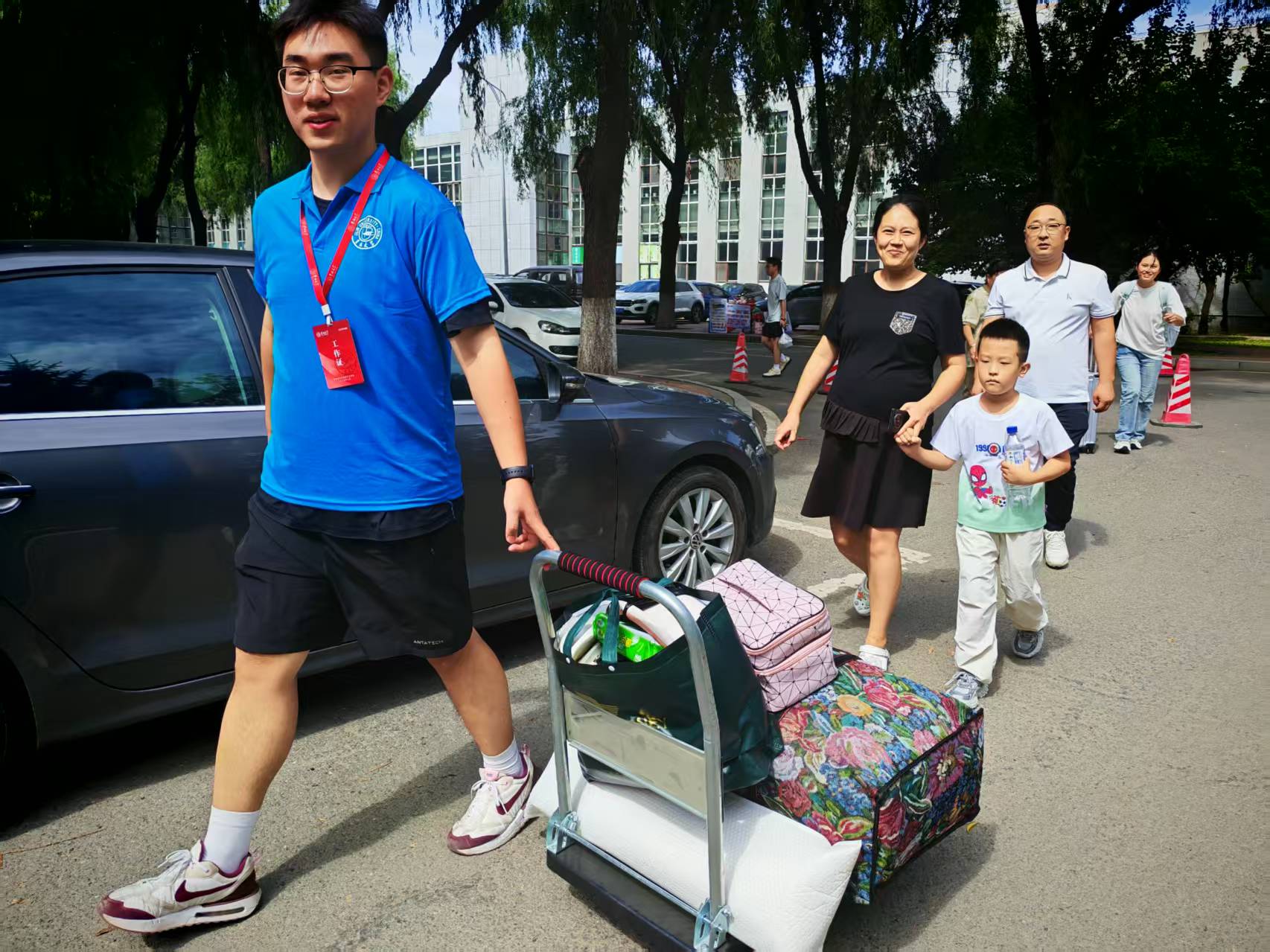 8 月 22 日凌晨 5:30,志愿者团队在细雨中自和平校区出发,完成了桌椅搭建、设备调试等筹备工作。7 时,全体人员均已就位,构建起涵盖“校门引导、报到办理、宿舍行李搬运、宿舍入住登记”的全流程服务闭环。在迎新现场,学院为新生精心准备了“‘吉大动科’专属宠爱礼品袋”,内有院徽钥匙扣、定制书签等纪念品,与入学资料袋一并发放。新生在辅导员助理的引导下完成身份核验、资料领取等手续后,由志愿者全程陪同前往公寓楼。各环节紧密有序,高效的服务获得了新生及家长的高度赞誉。