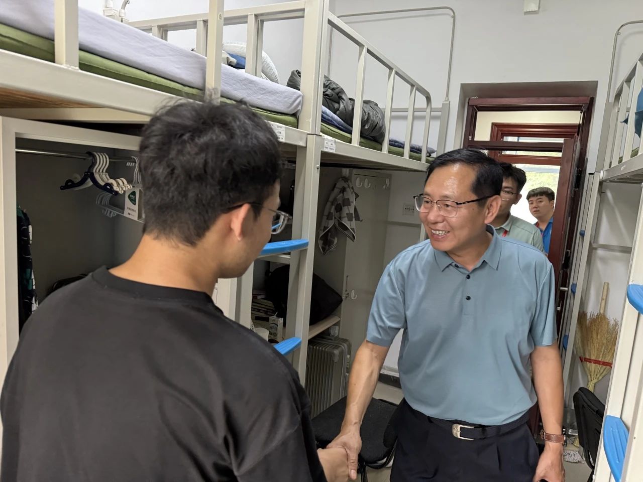 金秋送爽,扬帆起航。为深入了解2025级新生入学后的住宿状况与思想动态,打通思政育人的最后“一公里”,米乐mile官方网站党委书记徐仁元、副书记肖建荣、学生辅导员尹暄齐、贾子一等一行深入每一间学生寝室,向新生们传达学院的关怀与温暖。