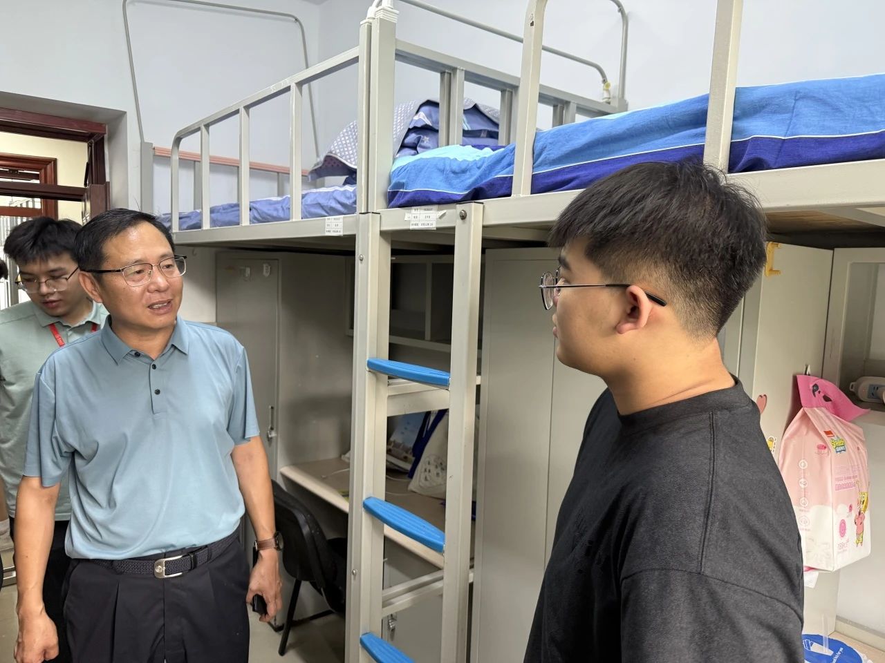 在走访新生宿舍的过程中,学院领导老师不仅与新生们进行了深入交流,还特别与随行的学生家长进行了亲切交谈。学院领导对家长们的辛勤付出表示感谢,同时,学院领导也鼓励家长积极参与学生的成长过程,与学院携手,共同为学生的未来发展创造更加有利的条件。