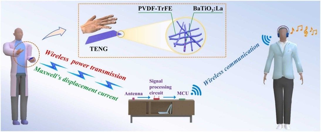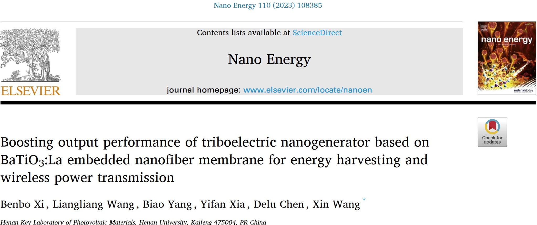 该研究成果以Boosting output performance of triboelectric nanogenerator based on BaTiO3:La embedded nanofiber membrane for energy harvesting and wireless power transmission为题,在Nano Energy上发表。yl7703永利官网为独立完成单位,已毕业硕士研究生习奔博为第一作者,王新教授为论文通讯作者。