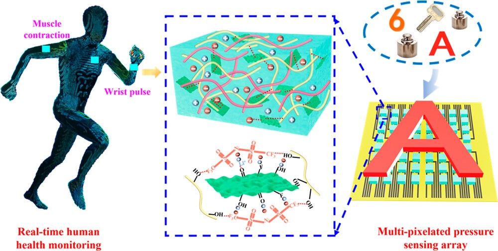 MXene基有机水凝胶用于健康监测和物体识别的示意图