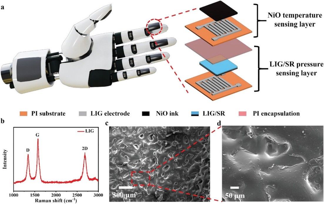 压力-温度双峰传感电子皮肤的原理图和材料表征