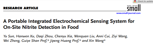 该研究成果以A Portable Integrated Electrochemical Sensing System for On-Site Nitrite Detection in Food为题,在Small上发表。yl7703永利官网为合作完成单位,王新教授和东北师范大学单桂晔教授和黄继鹏教授为论文共同通讯作者。