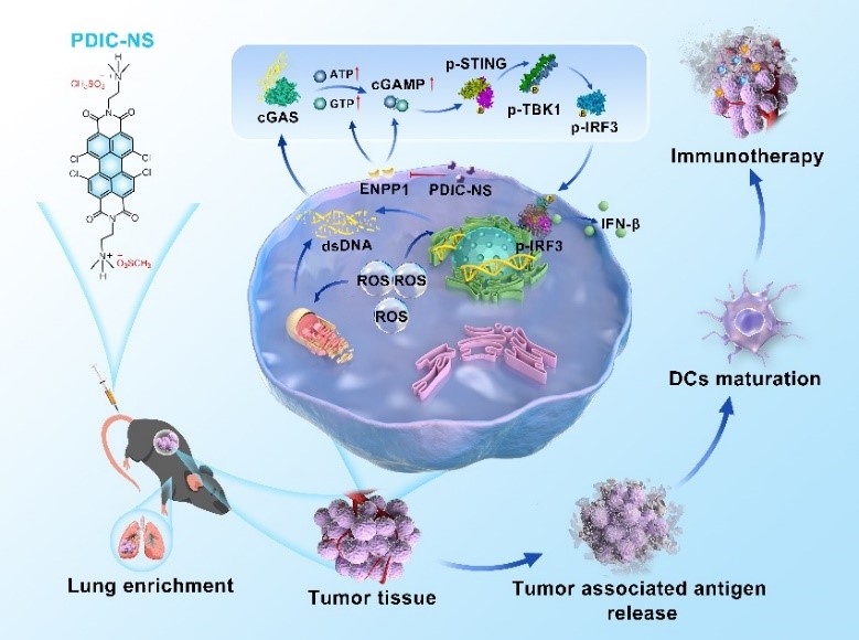 示意图:PDIC-NS诱导的DNA损伤激活cGAS-STING信号通路用于化学-免疫疗法